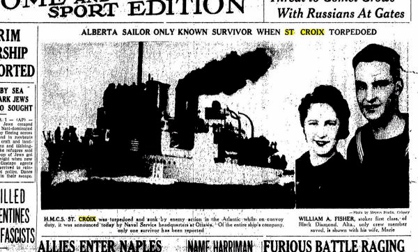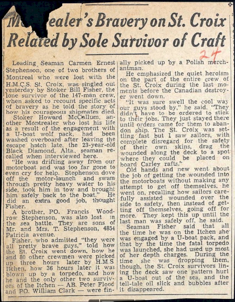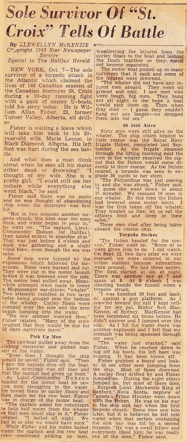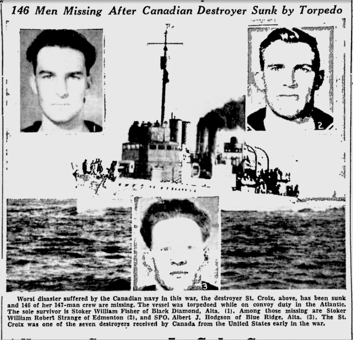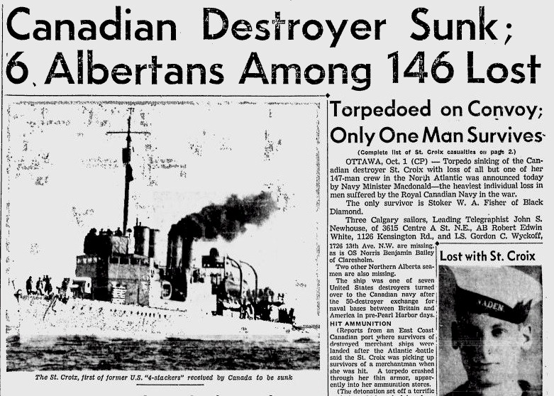 Newspaper article from the Calgary Herald on the loss of HMCS ST CROIX
