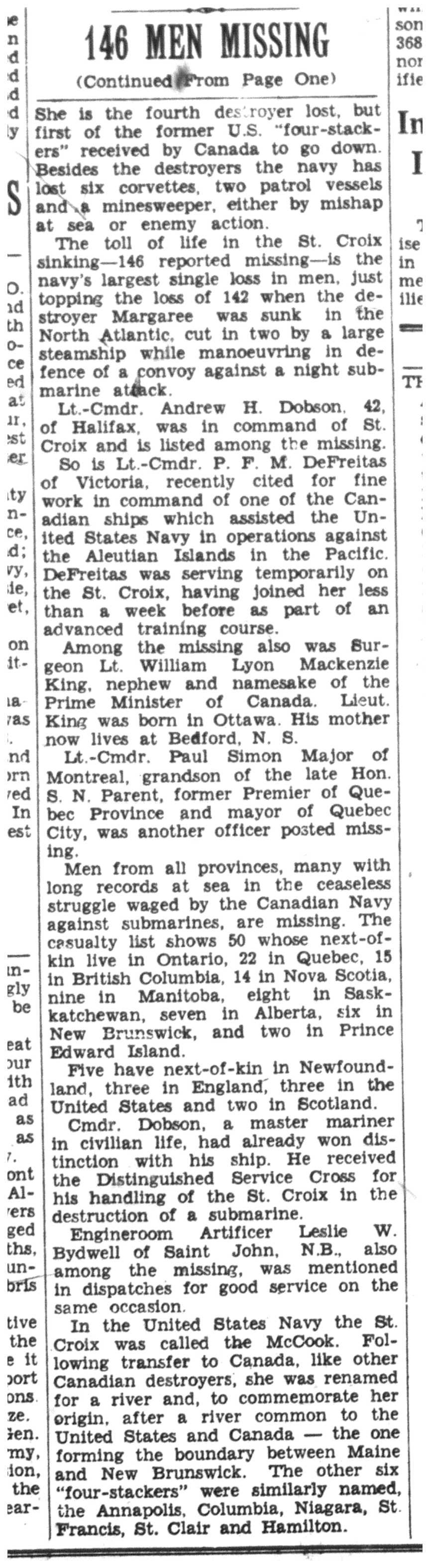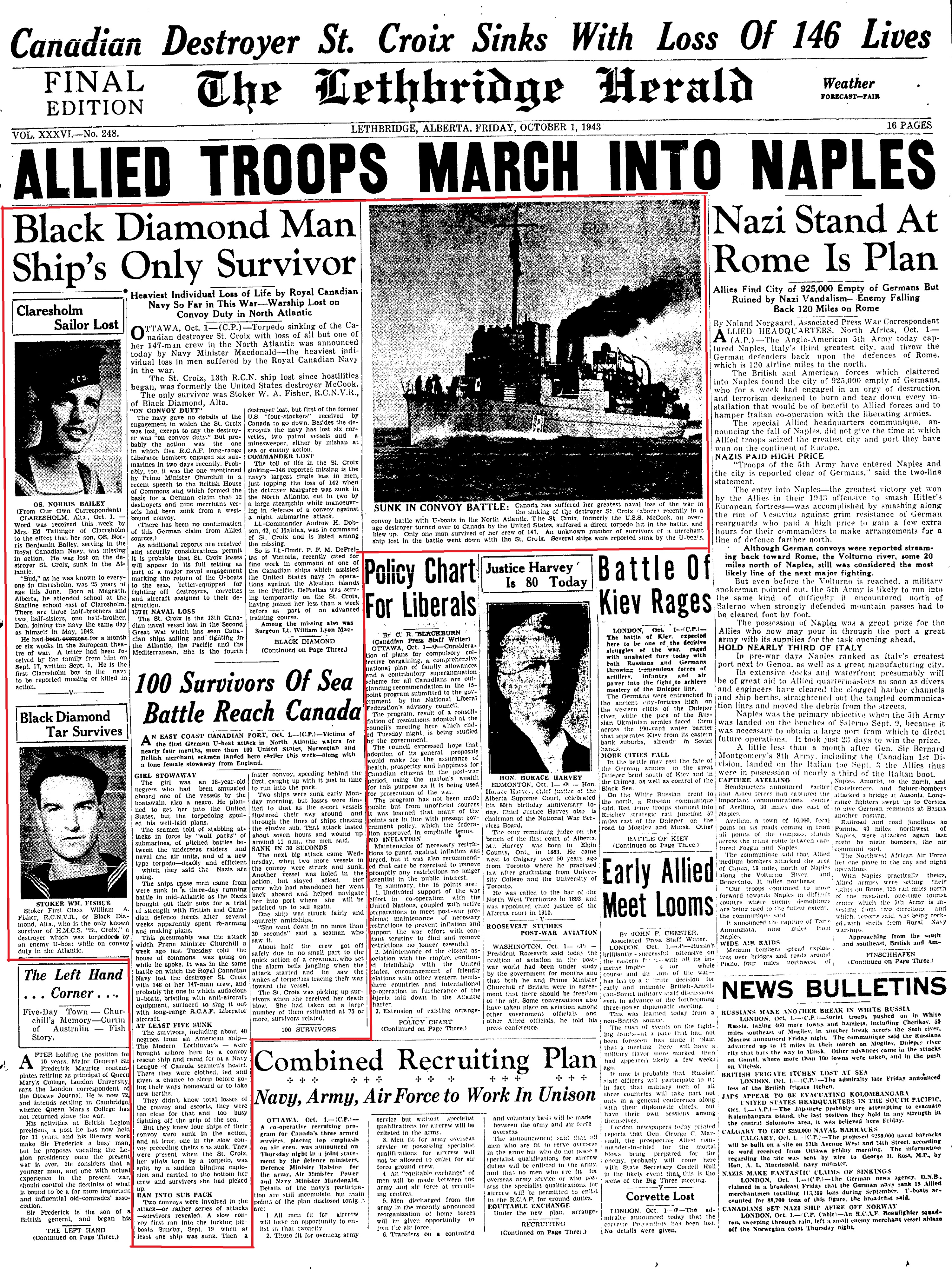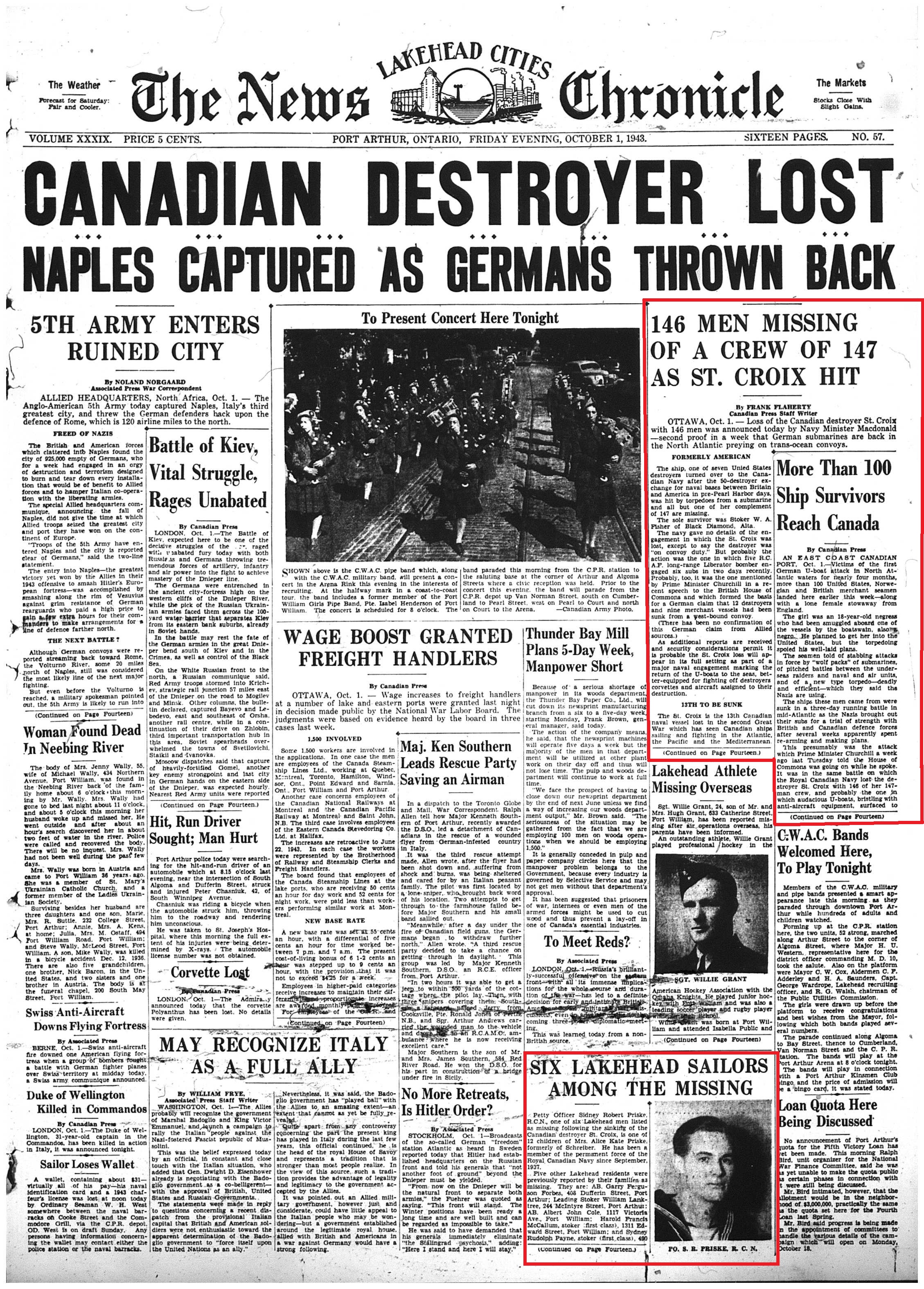 Newspaper article from the Calgary Herald on the loss of HMCS ST CROIX