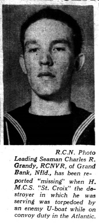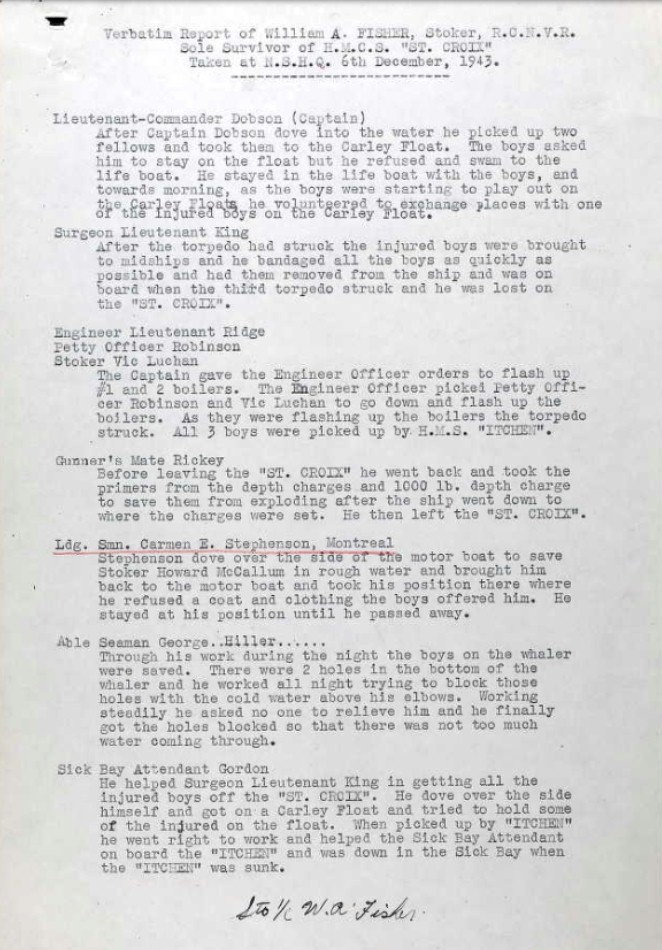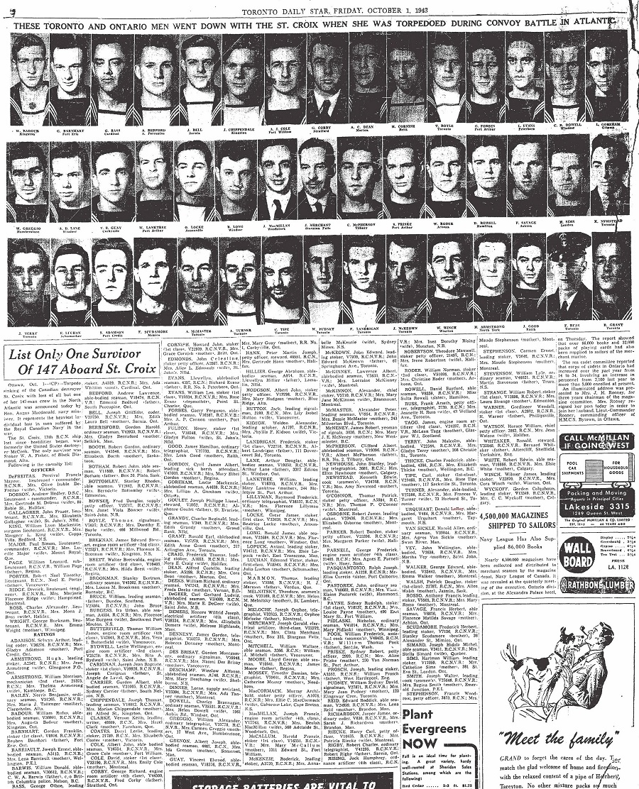 on the sinking of HMCS ST CROIX I81 on 20 Sep 1943