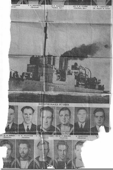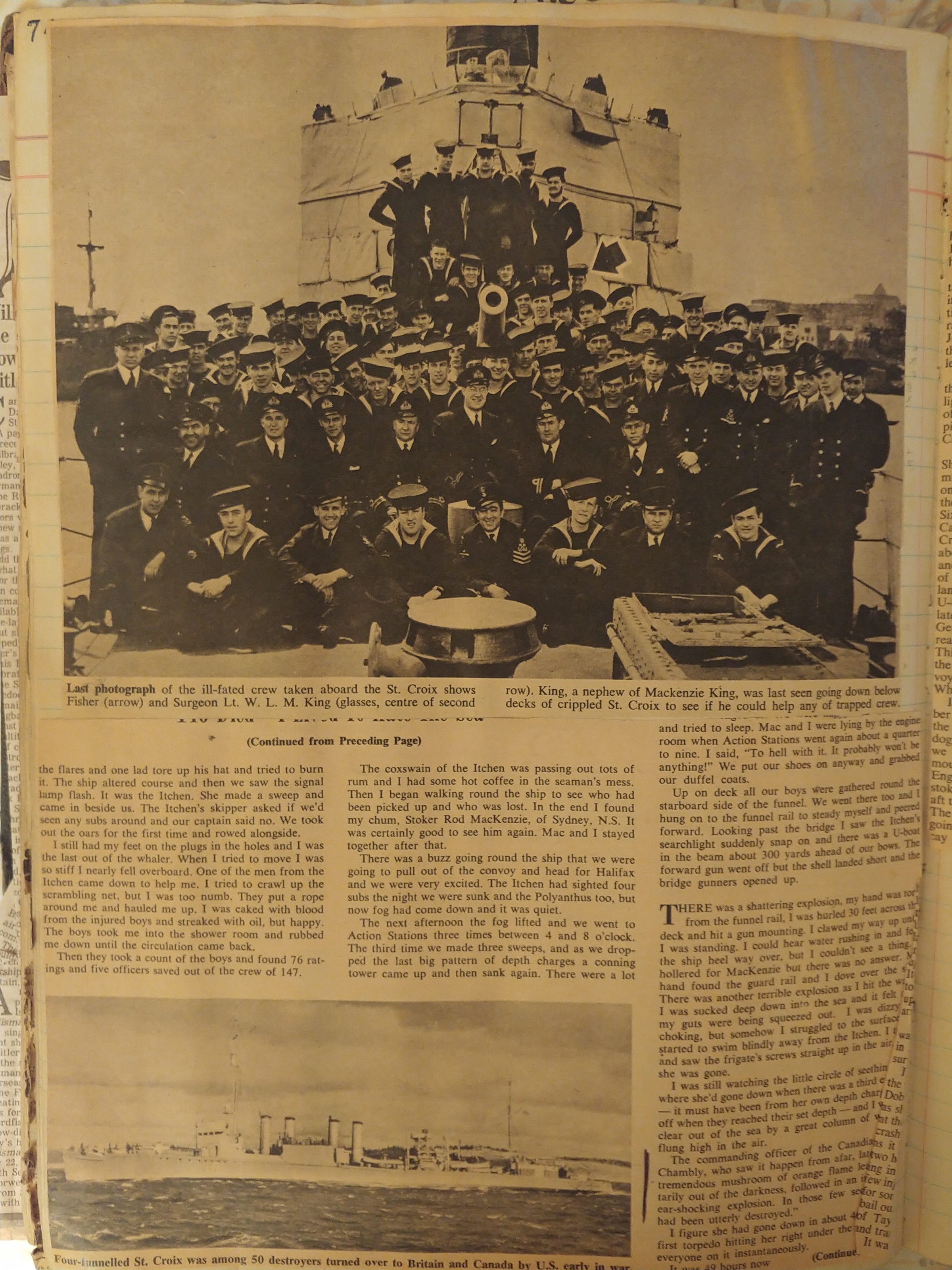 Articles on the sinking of HMCS ST CROIX - with final crew photo