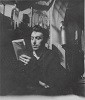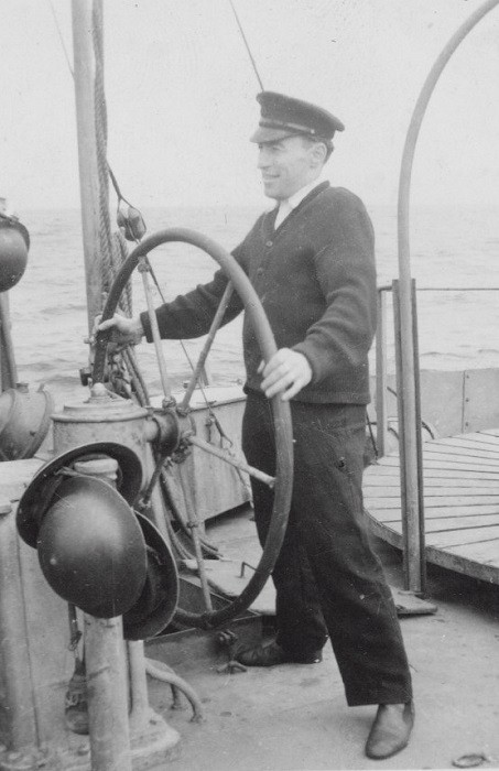 Kenneth Newstead reading a book in the galley on HMCS ST CROIX