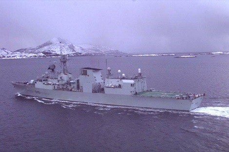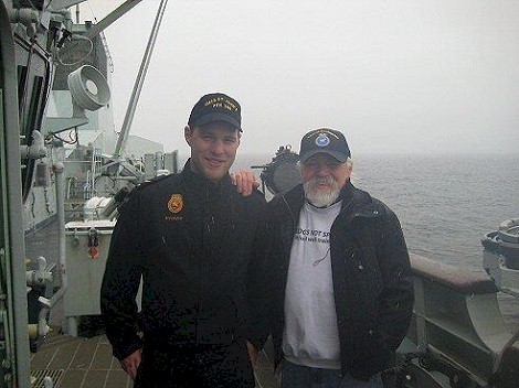 (STJ010) HMCS ST. JOHNS during Operation Joint Warrior on 24 April 2013 in the North Sea // Photographer: Master Corporal Max Murphy, Formation Imaging Services (STJ011) LS Rob Ewart, receives his OP Caribbean Service Medal // Courtesy of Jim Steel (STJ012) Jim Steel (RCN, Ret'd) on board HMCS St. Johns with his grandson, AB Rob Ewart // Courtesy of Jim Steel (STJ013)