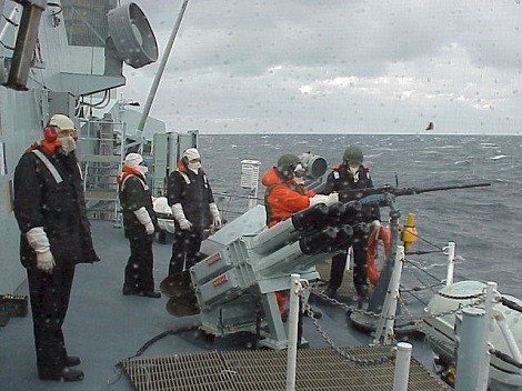 (JLF006) 50 Cal crew closed up HMCS ST JOHN'S 340 (JLF007) Mess deck in HMCS ST JOHN'S 340 (JLF008) Fo'c's'le party closed up for jackstay HMCS ST JOHN'S 340 (JLF009) Quarterdeck party preparing for jackstay on HMCS ST JOHN'S 340 (JLF010) Crew members of HMCS ST JOHN'S 340
