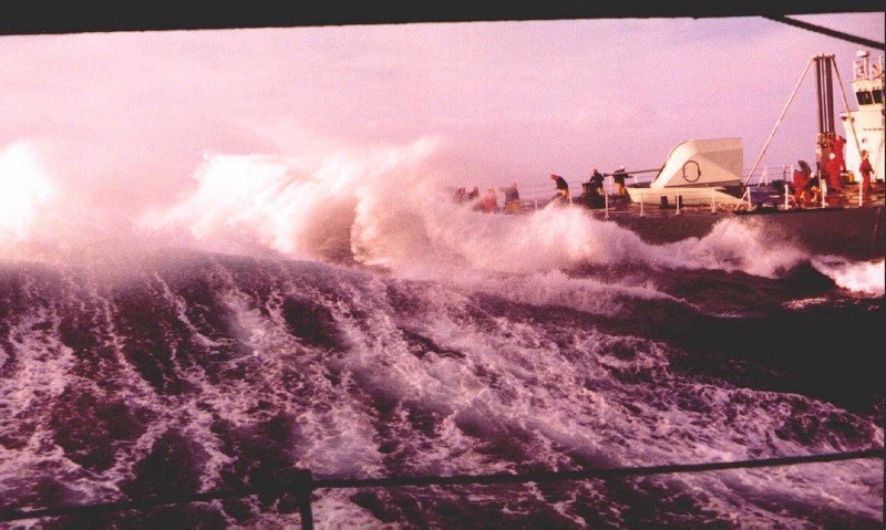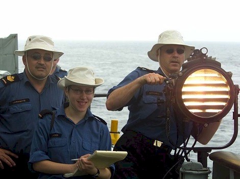 (JLF016) HMCS ST JOHN'S 340 somewhere in the Atlantic (JLF017) HMCS ST JOHN'S 340 buoy jumpers (JLF018) Crew members of HMCS ST JOHN'S 340 (JLF019) Nav Comms on HMCS ST JOHN'S 340 // PO2 Morisette, OS Jobin, and ?? Mitchell on the light (JLF020) HMCS ST JOHN'S 340 in heavy seas