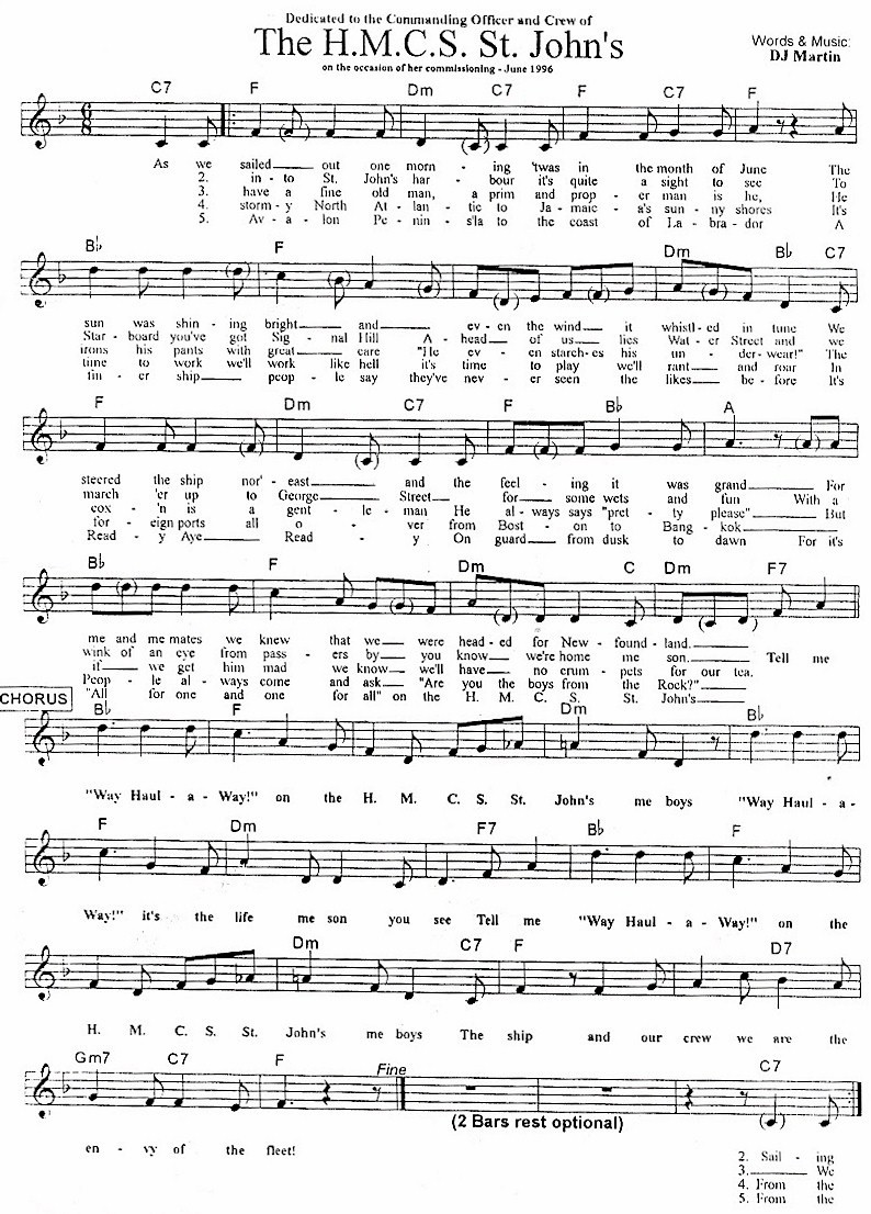 (STJ009) Song dedicated to HMCS ST JOHN'S for her commissioning by D.J. Ward Courtesy of Garry Weir, P1RM