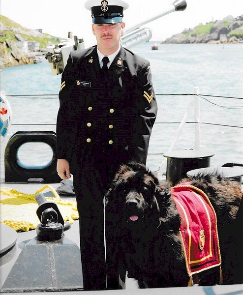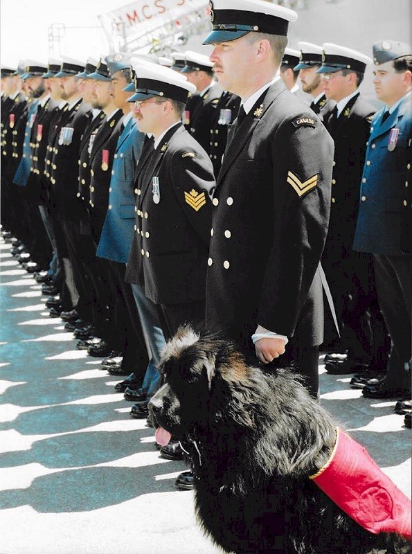Commissioning at St. John's, Newfoundland, 24 Jun 1996 (STJ001) "Myself and a fine fella from Bay Bulls!" LS Frank Raymond with the ship's mascot (STJ002 STJ003) HMCS ST JOHN'S alongside ST JOHN'S, Newfoundland for her commissioning - Jun 1996 (STJ004) HMCS ST JOHN'S taking 600 plus guests to sea for a short cruise during her commissioning visit to ST JOHN'S Newfoundland
