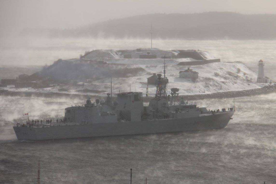 (STJ017) HMCS ST JOHN'S 340 moves into position for a towing exercise during Exercise SPARTAN WARRIOR 16 in the Atlantic Ocean on 01 Nov 2016 // Photographer: MCpl Jennifer Kusche, Canadian Forces Combat Camera / IS15-2016-0003-056 (STJ018) Nighttime at sea on HMCS ST JOHN'S 340 // © 2016 Crown Copyright DND-MDN // Courtesy of Rick Bungay (STJ019) HMCS ST JOHN'S 340 departs Halifax 09 Jan 2017 for the Mediterranean to join Standing NATO Maritime Group 2 as part of Op REASSURANCE // Courtesy of Clarence Hemeon (STJ020) HMCS St. John’s departs jetty NB, HMC Dockyard, Halifax for OP REASSURANCE on 09 Jan 2017 // Photo: LS Peter Frew, Formation Imaging Services Halifax (STJ021) Live-fire exercise aboard HMCS St John's on the Atlantic Ocean, 10 July 2017. Note her gun shield art // DND-RCN photo 2017