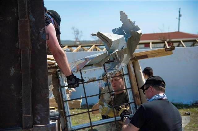 (STJ022 - STJ026) Crew members from Her Majesty’s Canadian Ship St. John’s and British Royal Marines clean up an elementary school on South Caicos Island as a part of Operation RENASSIANCE, a humanitarian aid mission in the aftermath of Hurricane Irma, September 16, 2017 // Photos by: MCpl Chris Ringius, Formation Imaging Services Halifax 2017