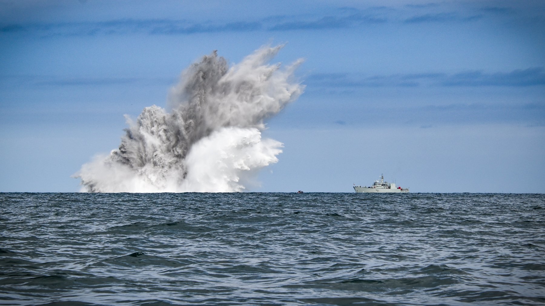 (SMR005-SMR006) HMCS SUMMERSIDE'S embarked team of Royal Canadian Navy clearance divers destroyed historical ordnance left over from WW1 and WW2 off the coast of France yesterday. Together with our SNMCMG1 partners, we're helping clean up European waters of dangerous leftover mines and ordnance and are having a blast doing it! 21 Aug 2021 // Photographers: MS Cox, S1 Congdon