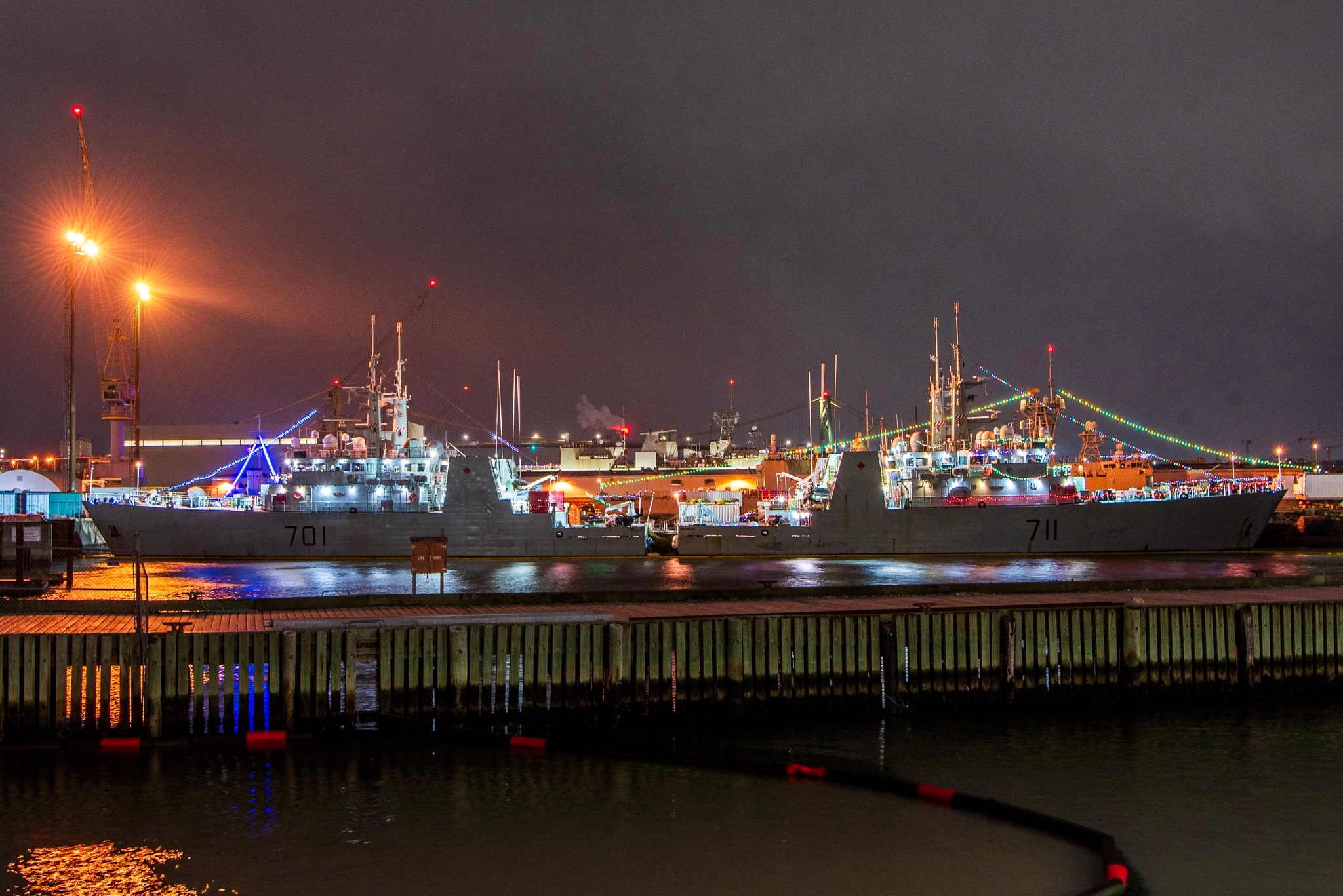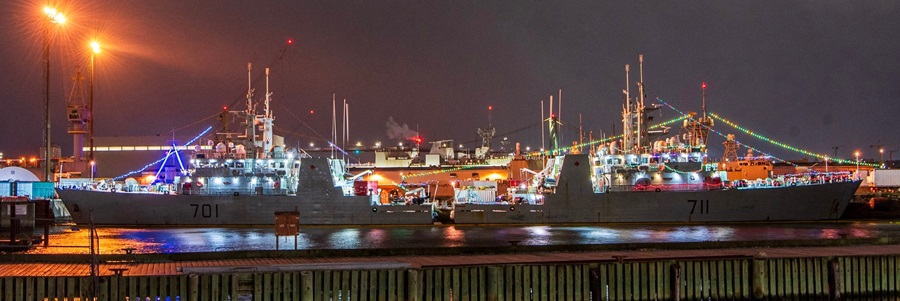 (SMR007) HMCS GLACE BAY 701 and HMCS SUMMERSIDE 711 decorated for the 2023 Christmas season Source: RCN Facebook page Photographer: Mona Ghiz