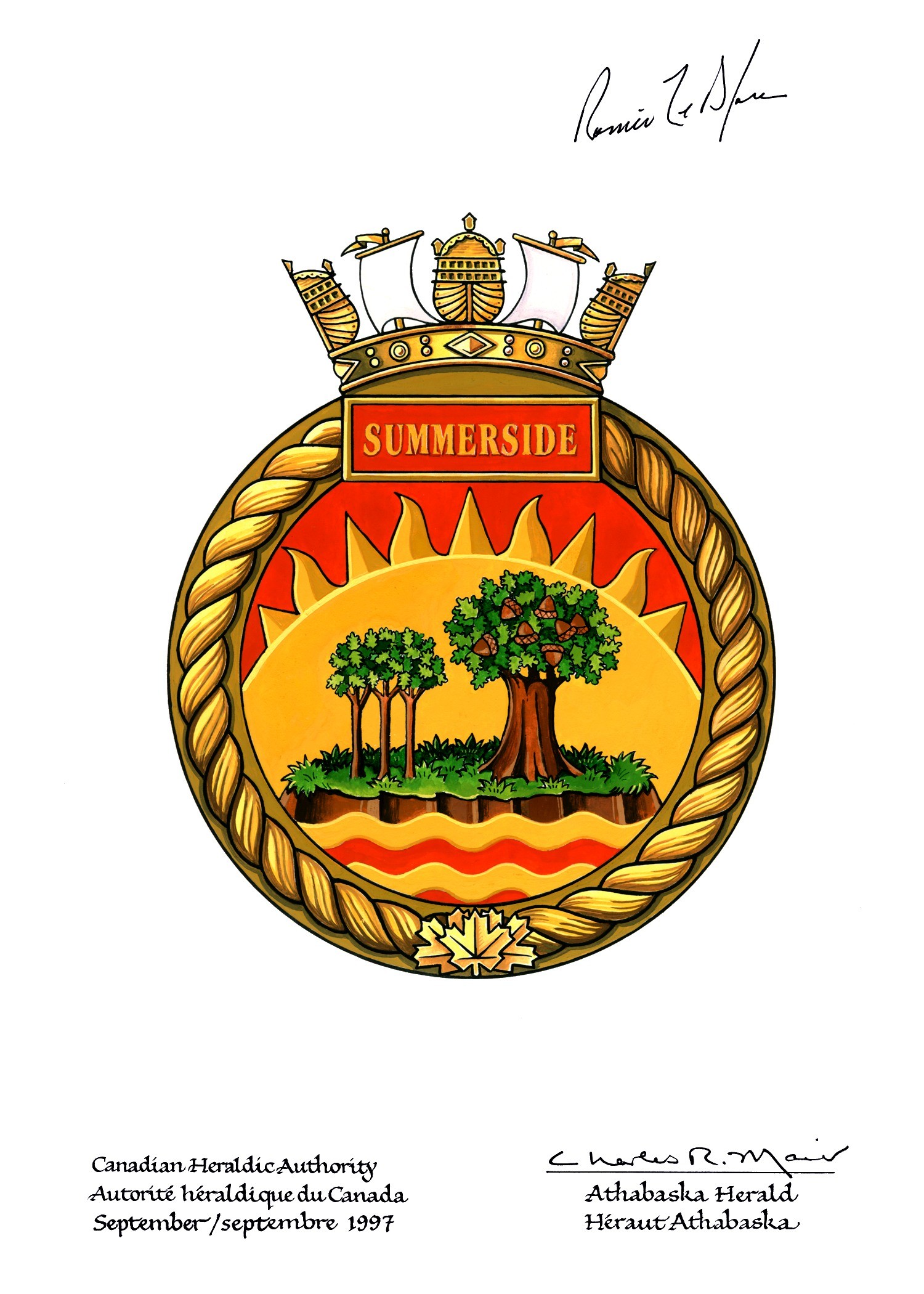 (SMR001) Official badge for HMCS SUMMERSIDE 711 (SMR002) HMCS SUMMERSIDE 711 approaches Saglek, Labrador, during Operation NANOOK 11 - 10 Aug 2011 // Photographer: Corporal Rick Ayer, Formation Imaging Services, Halifax, Nova Scotia // RCN image # HS2011-H003-002 (SMR003) HMCS SUMMERSIDE 711 off the coast of Labrador near Saglek, Labrador during Operation NANOOK 11 - 10 Aug 2011 // Photographer: Corporal Rick Ayer, Formation Imaging Services, Halifax, Nova Scotia // RCN image # HS2011-H003-009 (SMR004) HMCS SUMMERSIDE 711 deploys a Rhib to take members of the Canadian Rangers ashore in Cape Dyer, Nunavut during Operation NANOOK 11 - 15 Aug 2011 // Photographer: Corporal Rick Ayer, Formation Imaging Services, Halifax, Nova Scotia // RCN image # HS2011-H003-080 (SMR005) HMCS SUMMERSIDE 711 sits off the coast of Cape Dyer, Nunavut during Operation NANOOK 11 - 15 Aug 2011 // Photographer: Corporal Rick Ayer, Formation Imaging Services, Halifax, Nova Scotia // RCN image # HS2011-H003-082