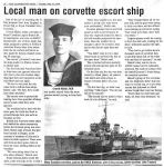 After working up at Halifax she joined EG C-5 and in Apr 1944, after seven transatlantic trips, was assigned at Londonderry to Western Approaches Command for invasion duties. She was employed in U.K. waters until returning to Canada for two months' refit at Liverpool, N.S., commencing in mid-Oct 1944. After further repairs at Halifax were completed on 18 Jan 1945, she proceeded to Bermuda for three weeks' workups.