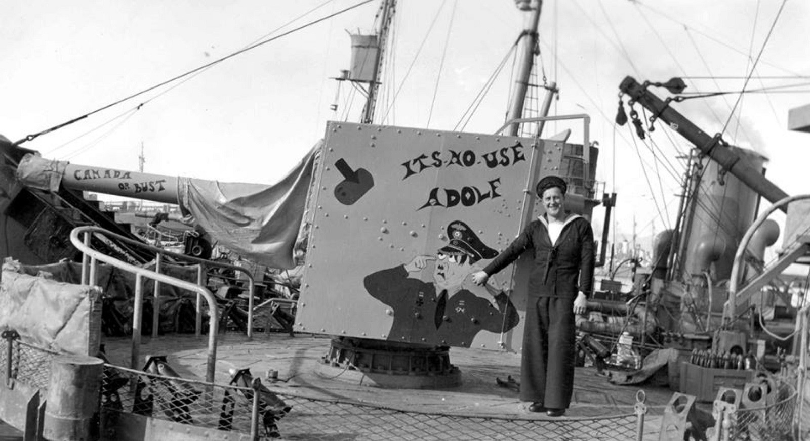 (SMR001) Gunshield art on HMCS SUMMERSIDE K141 - 1945 // Credit: Library and Archives of Canada (SMR002) HMCS SUMMERSIDE K141 // Source: Flickr photo collection of Ron Bell (SMR003) An interview with Everett Malott // The Leamington Post, Tuesday, 31 May 1994 // From the collection of Everett Malott // Courtesy of Jake Thomas (SMR004) Gunshield art on HMCS SUMMERSIDE K141 - photo dates 07 Feb 1943 // Courtesy of the CFB Esquimalt Naval and Military Museum - photo # 1994.38.133 (SMR005) Unknown sailor standing beside the gunshield art on HMCS SUMMERSIDE K141 - dated 07 Feb 1943 // Courtesy of the CFB Esquimalt Naval and Military Museum - photo # V2000.807.071 (SMR006) Three Amigos gunshield art, painted by Ronald Ullathorne, on the pom-pom gunshield in the after gun tub on HMCS SUMMERSIDE K141