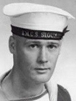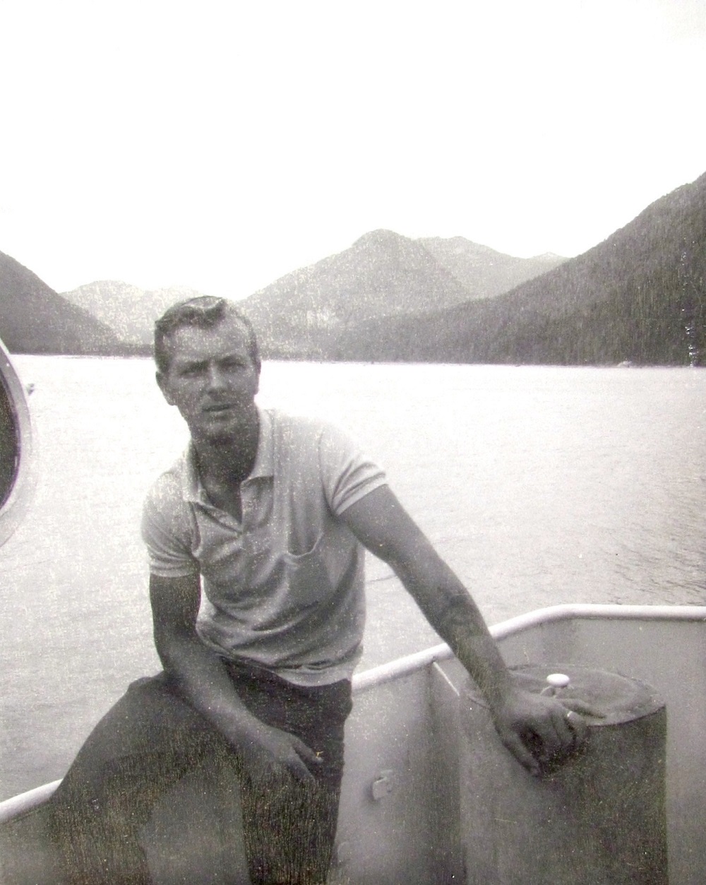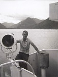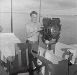 Alfe Duhamel sending flashing light on HMCS SUSSEXVALE at anchor off Mexico circa 1959-1960