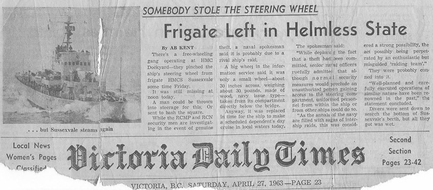 Helm stolen from HMCS SUSSEXVALE // Source: Victoria Daily Times, Saturday,