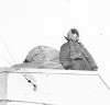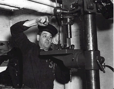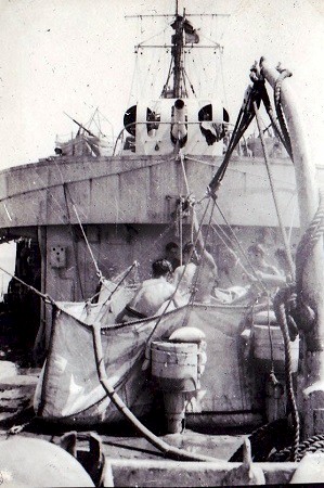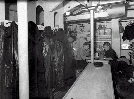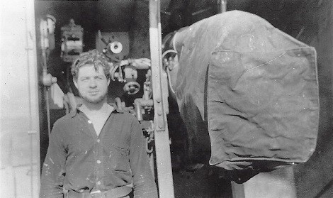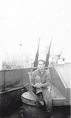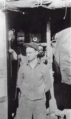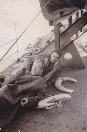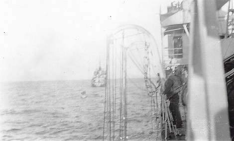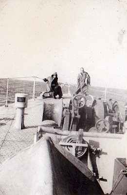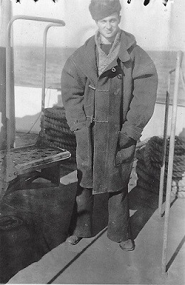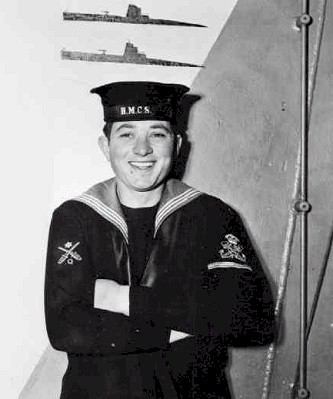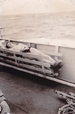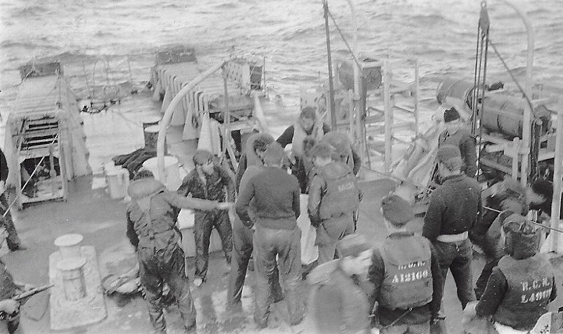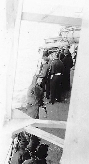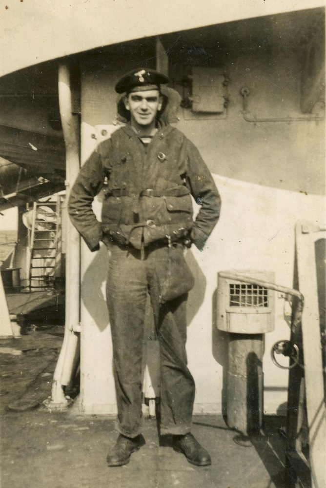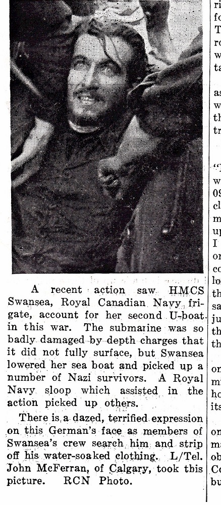 Unknown sailor on HMCS SWANSEA K328. It is not know if this is a German prisoner or a