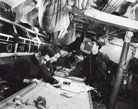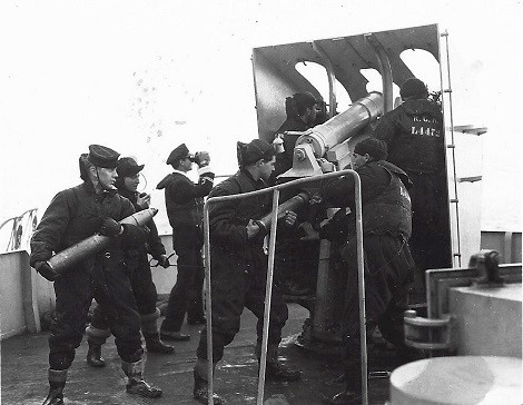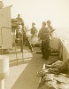 members on HMCS SWANSEA smoking while being fired on by German coastal guns in Aug