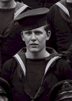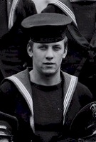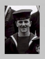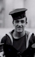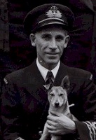 William (Bill) Green on HMCS THORLOCK with the ship's mascot Pisstank From the collection of Bill Green Courtesy of Chad Green