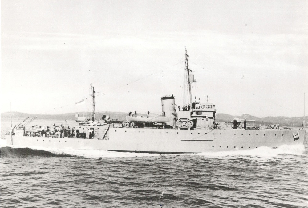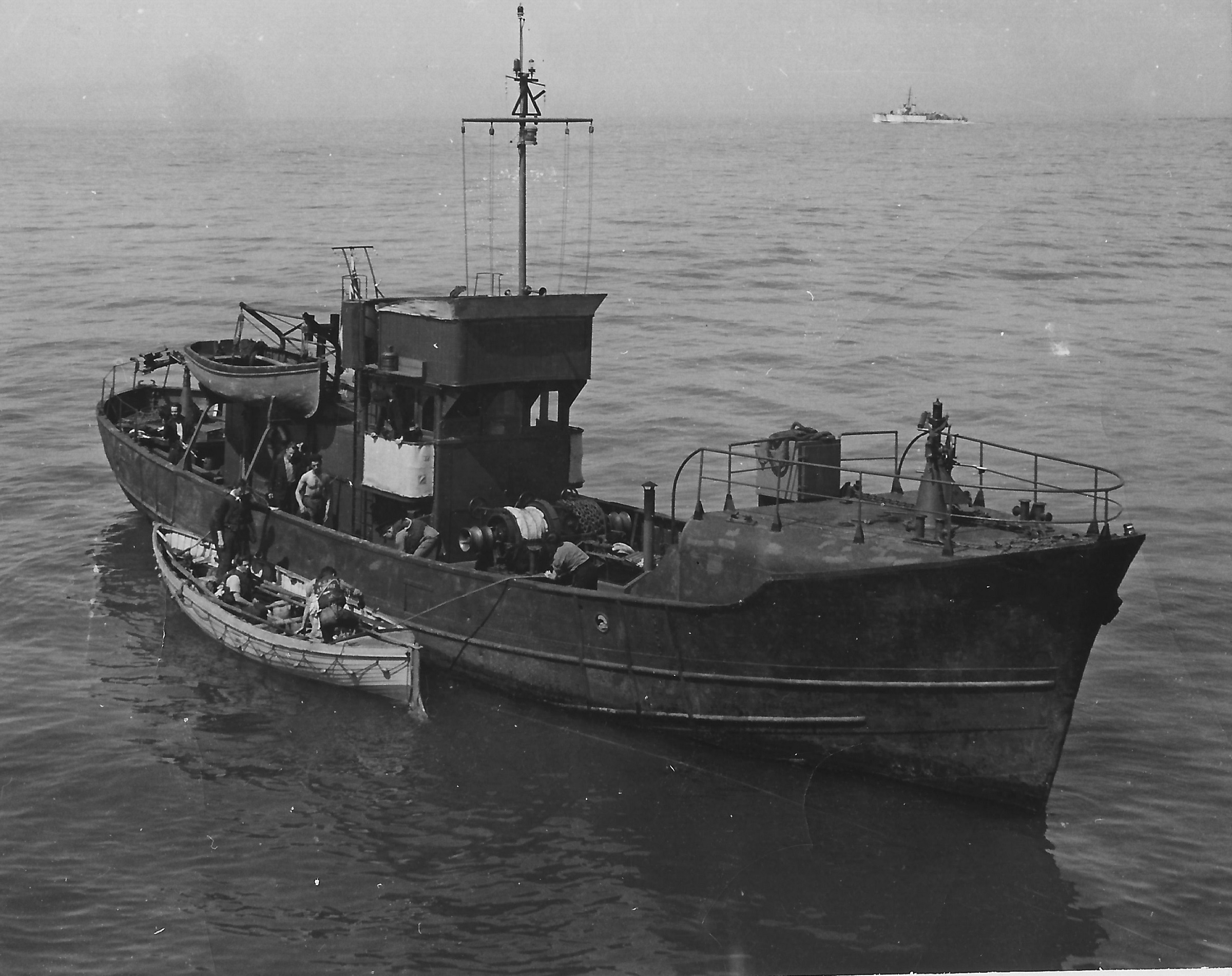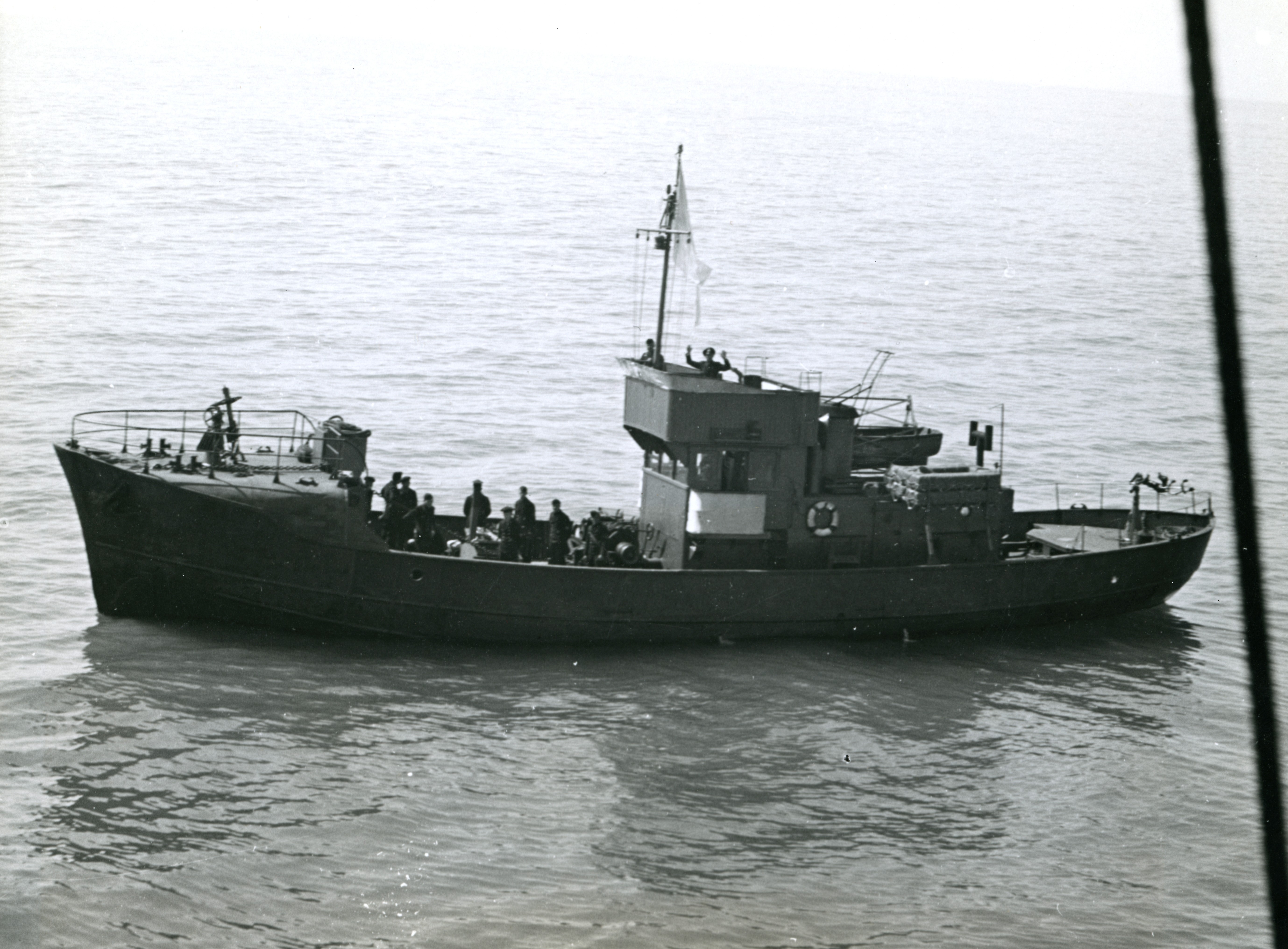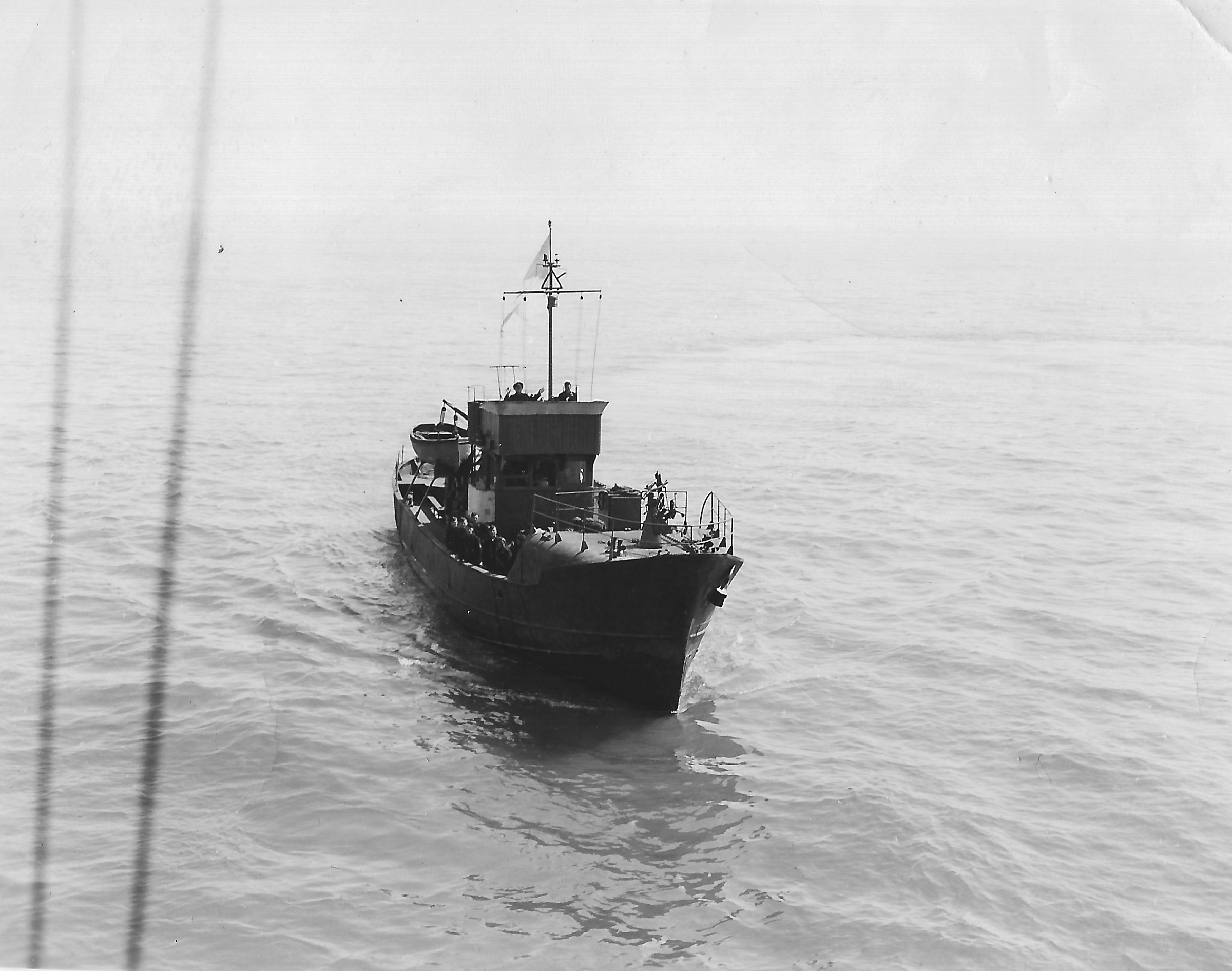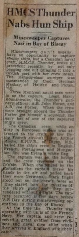 In May 1945, in the Bay of Biscay, HMCS THUNDER accepted the surrender of the German auxiliary minesweeper FGi07