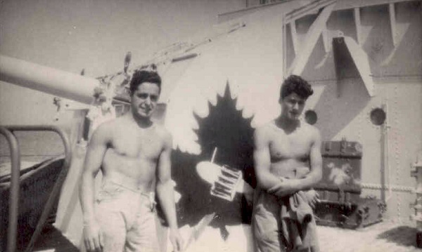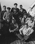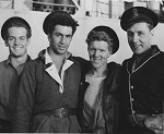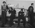 (JF01 & JF02) J.P. Fortin on HMCS THUNDER J156 (JF03) J.P. Fortin (left) and (belived to be) James Tobias painting HMCS THUNDER's gunshield (JF04) HMCS THUNDER's funnel with the number of the 31st Minesweeping Flotilla with the Maple Leaf above (JF05) HMCS THUNDER J156 - note her gunshield art (JF06) J.P. Fortin on HMCS THUNDER
