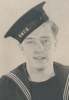 (GFW010) PO George Woods on HMCS TIMMINS (GFW011) .5 cal on HMCS TIMMINS. Merchant ship visible in the distance. From the collection of George F. Woods, PO, RCNVR Courtesy of Eleanor Woods and family