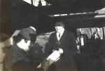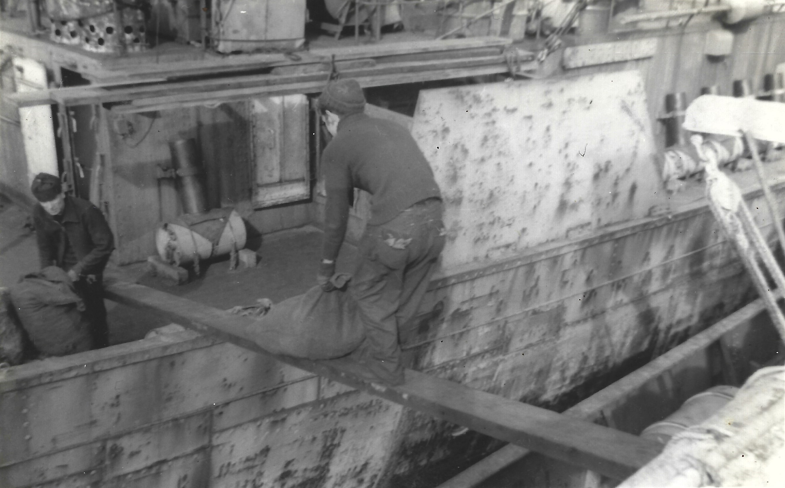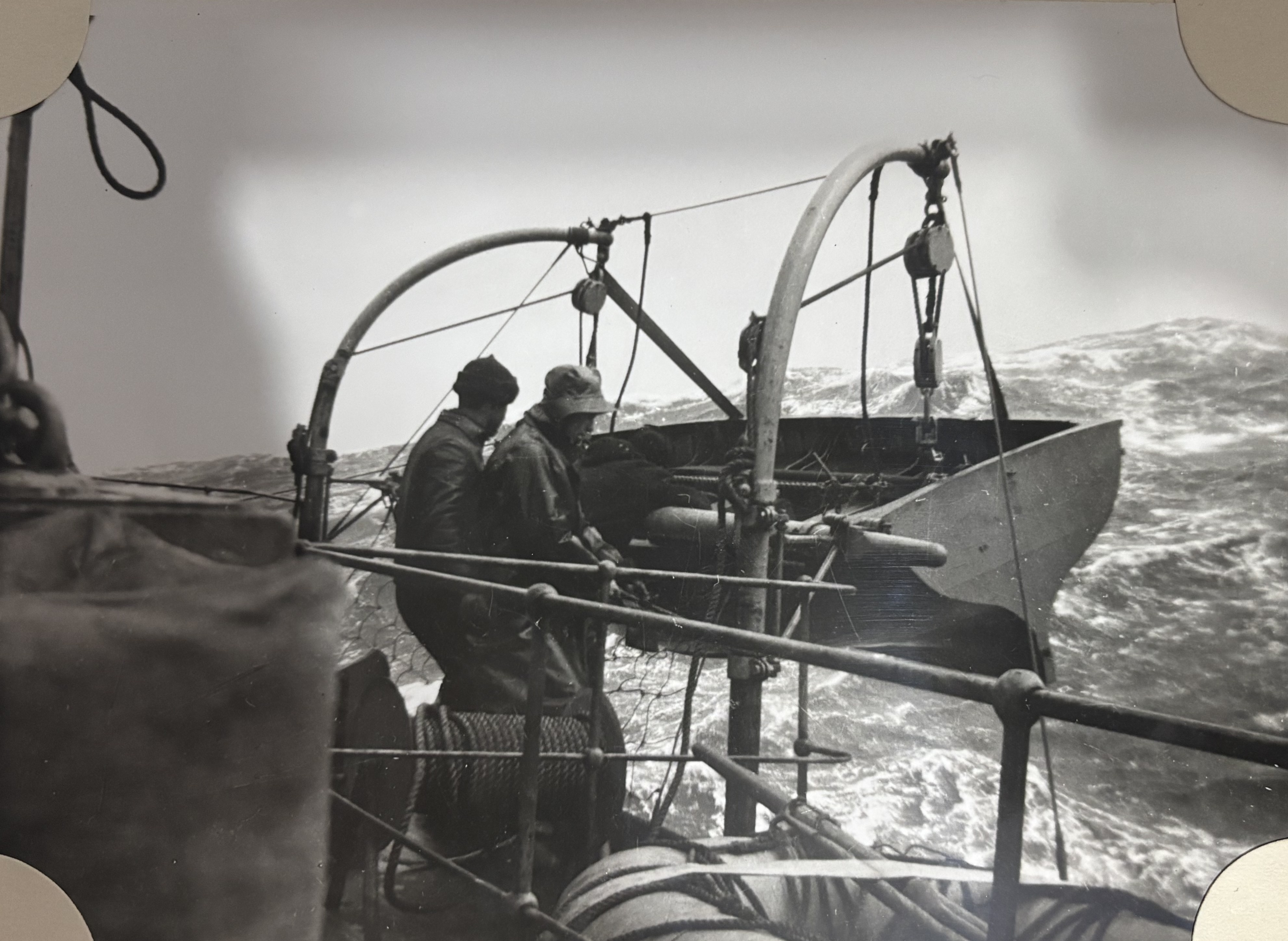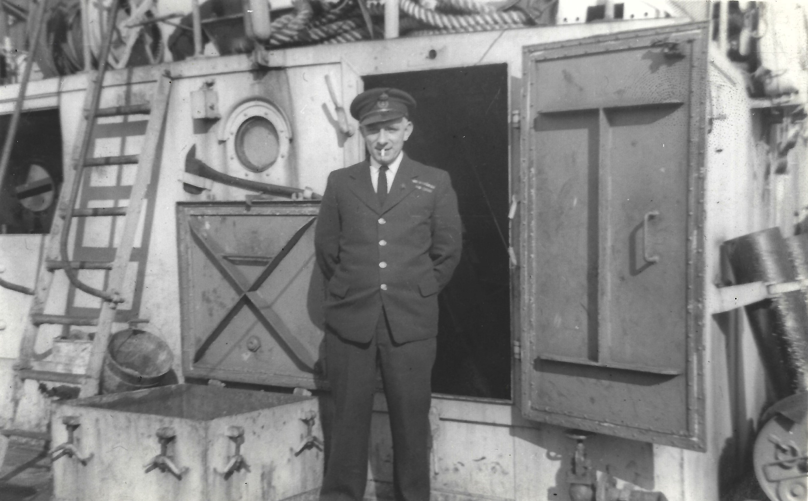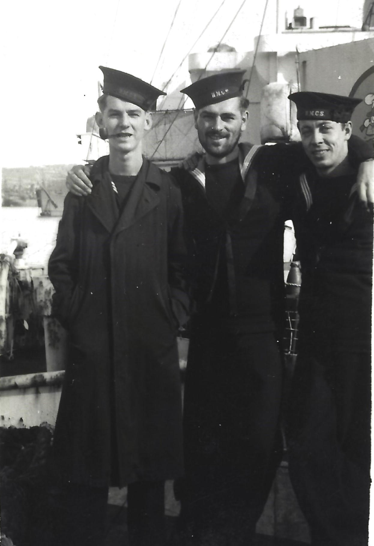 (TB40) Unknown Sig on the starboard signal light on HMCS TRILLIUM K172 (TB41) Unknown Tel or SD looking out a scuttle on HMCS TRILLIUM K172 (TB42) Chiefs and Petty Officer of HMCS TRILLIUM K172 // Identified 2nd from right - CERA James (Jimmy) Sands (TB43) Unknown officer and CPO on the lower bridge wing of HMCS TRILLIUM K172 (TB44) Two unknown sailors on HMCS TRILLIUM K172 enjoying a bit of quite time reading and keeping warm by sitting on the grate of the boiler room hatch