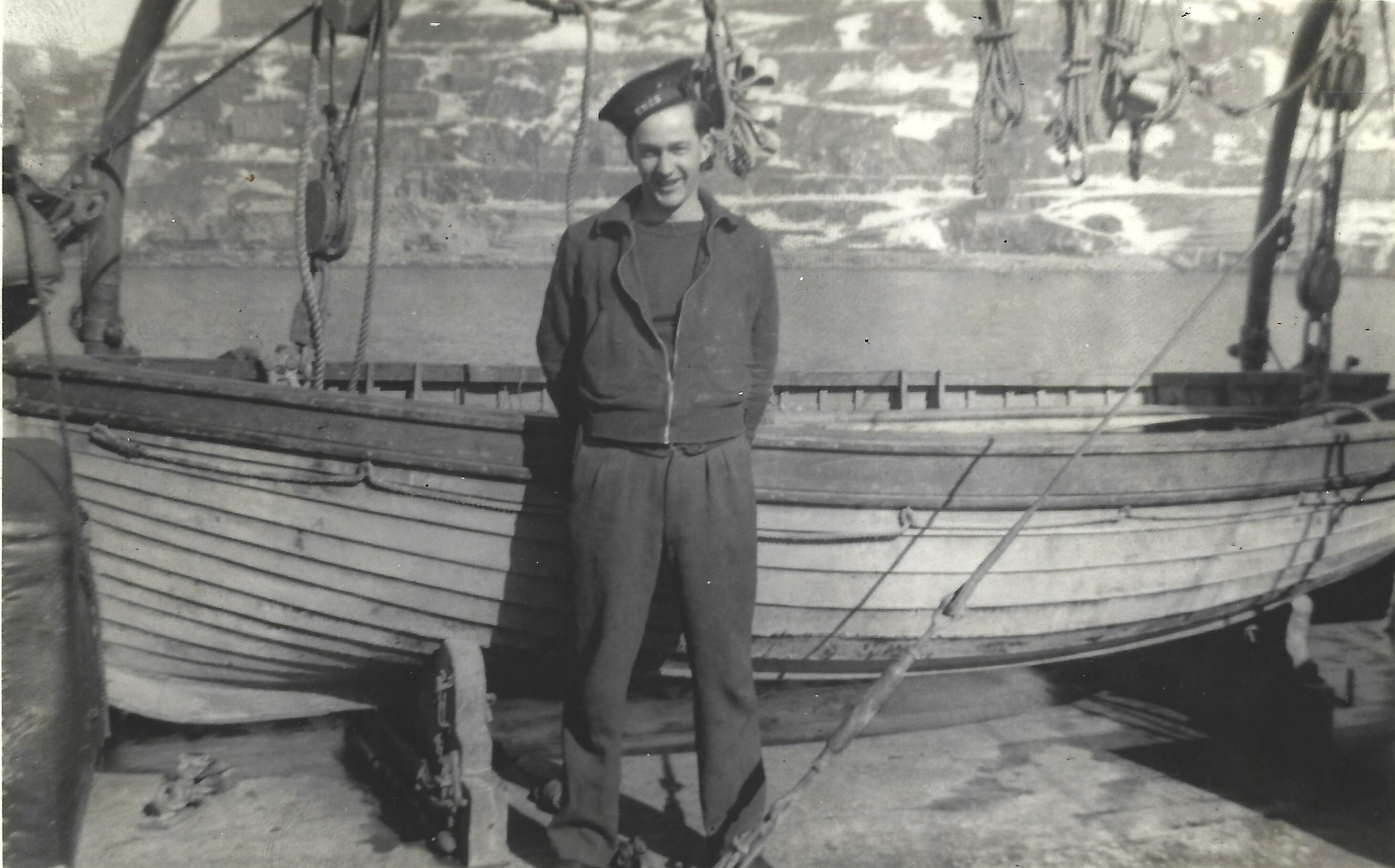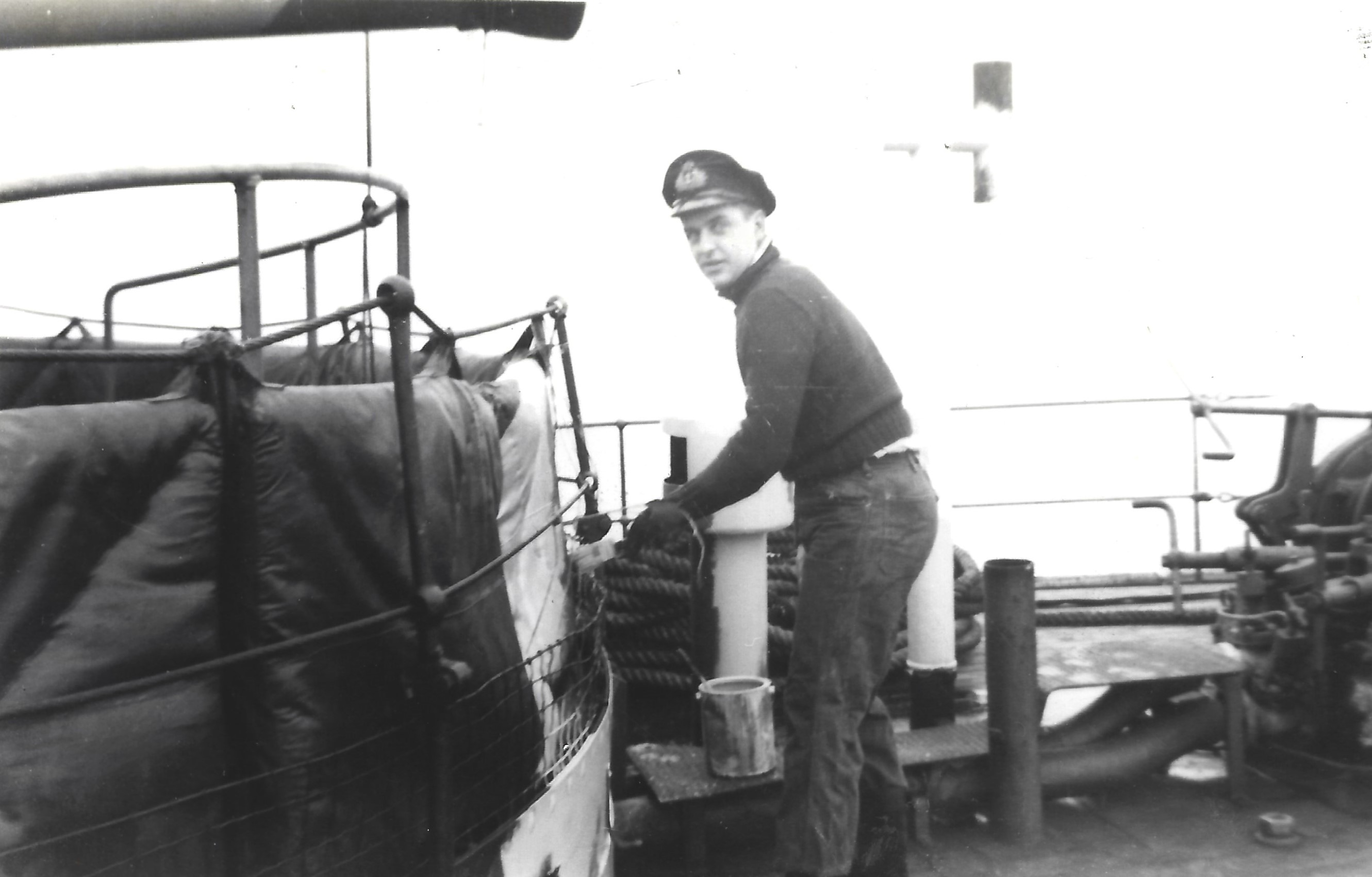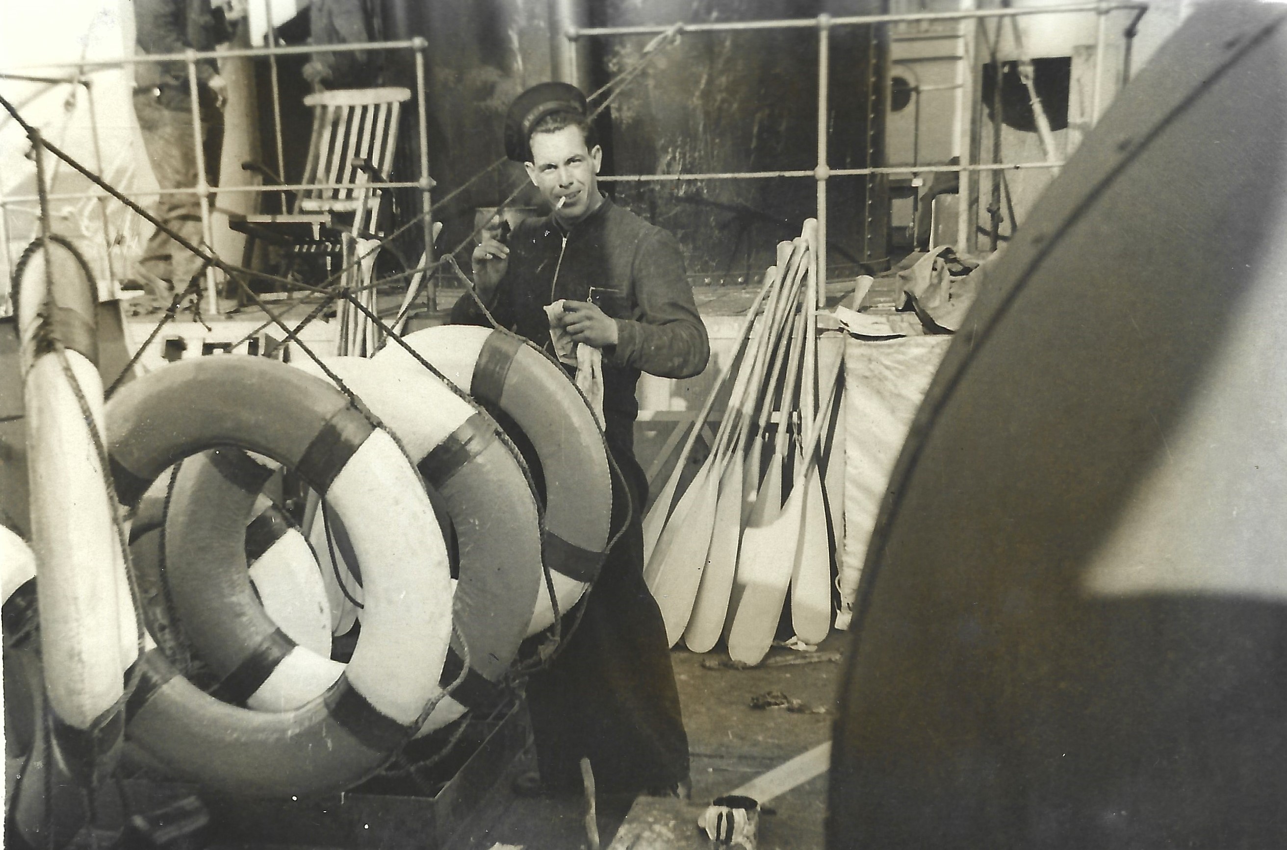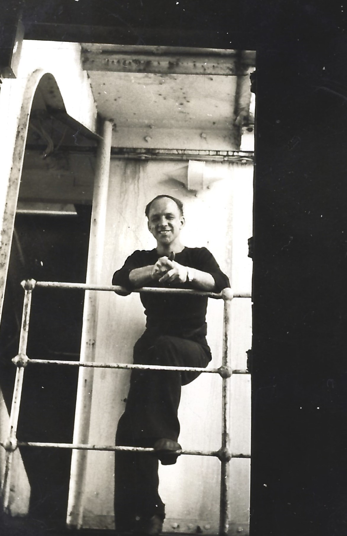 Unknown sailor on HMCS TRILLIUM K172 (TB29) Unknown sailor on the boat deck of HMCS TRILLIUM K172 at St. John's, Nfld