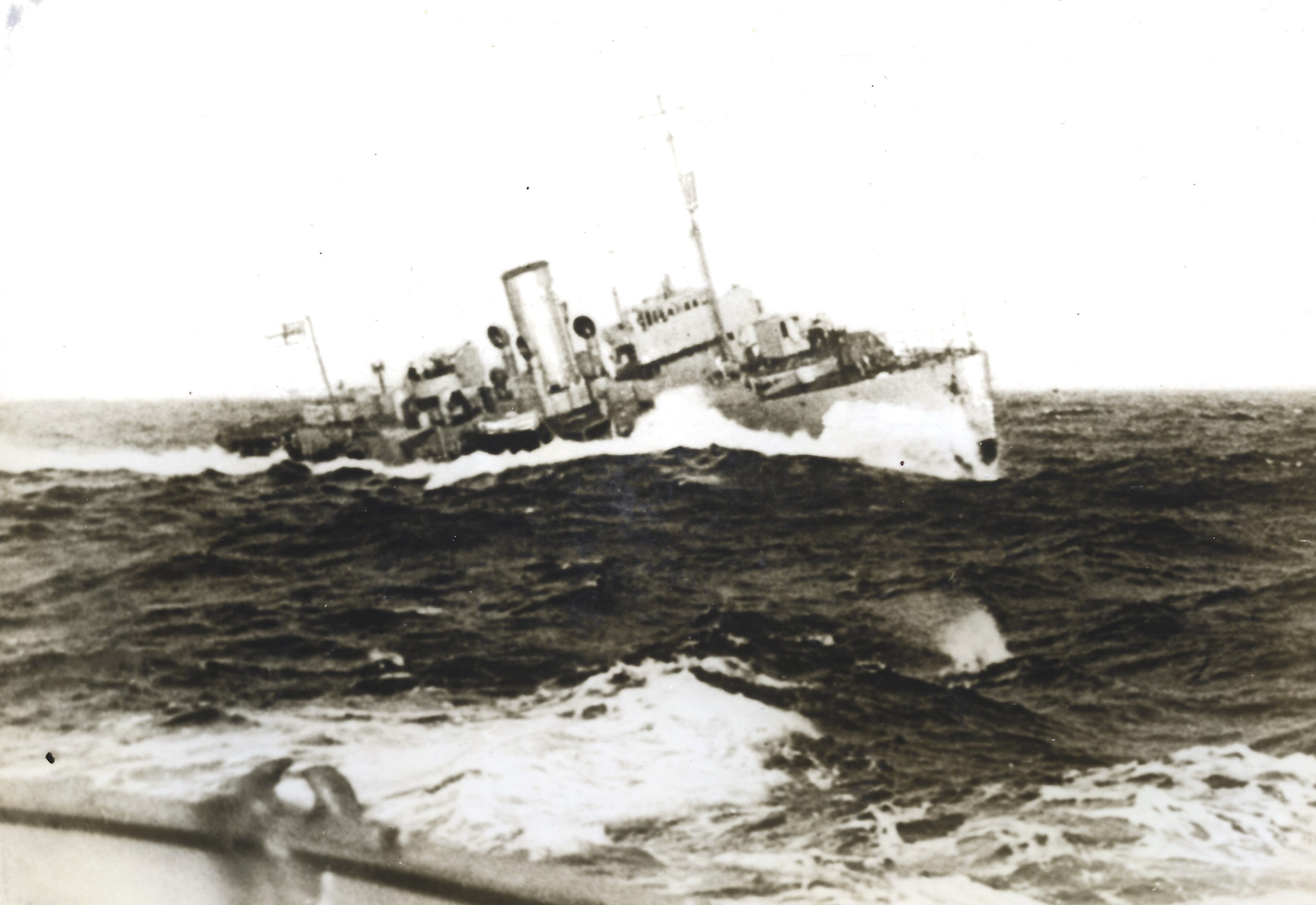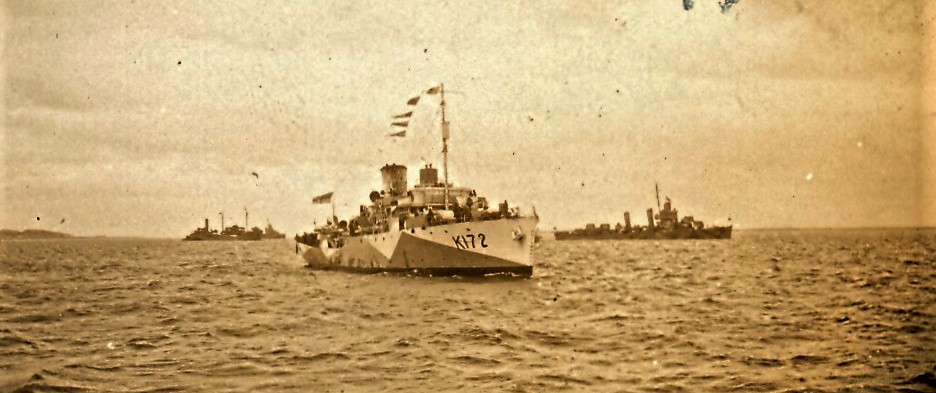 (TB49-TB50) HMCS TRILLIUM K172 (TB51) Aircraft flying over a North Atlantic Convoy From the collection of Theodore (Ted) Brown, RCNVR Courtesy of David Brown