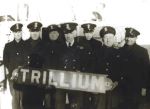(TB30) Unknown Lt and CPO on HMCS TRILLIUM K172 (TB31) Unknown sailor on HMCS TRILLIUM K172. Not the ships in convoy on the horizon (TB32) Unknown CPO and PO on the quarterdeck of HMCS TRILLIUM K172. Photo possibly taken at St. John's, Nfld (TB33) Two unknown sailors on the quarterdeck HMCS TRILLIUM K172 (TB34) Three unknown sailors by the 4-inch gun on HMCS TRILLIUM K172. A small portion of her gunshield art can be seen in the upper right corner of the photo.