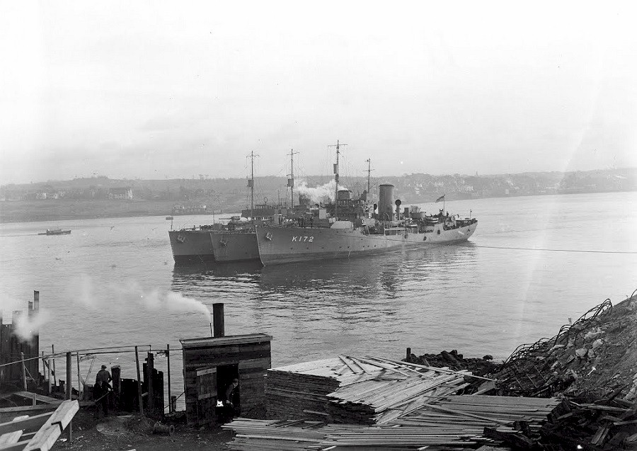 (Note: Although the place & date of foc'sle extension for HMCS TRILLIUM K172 as listed on 27 Jun 43, at Boston, Mass, was obtained from official records, photographic evidence seems to prove this wrong. It is more likely that TRILLIUM'S Fo'c's'le extension was completed between Apr-Jun 42 Galveston TX. source: RCN news magazine)