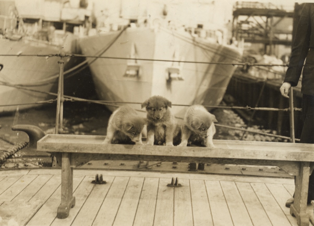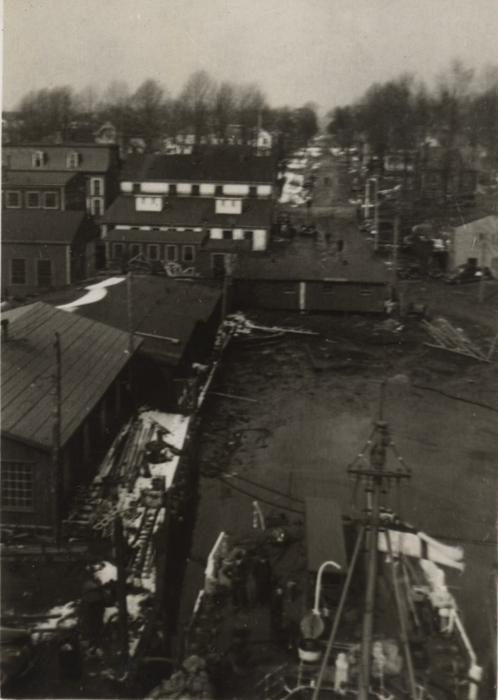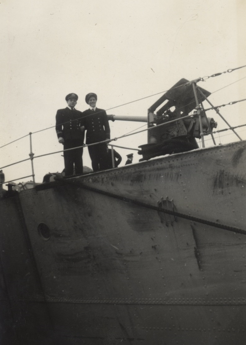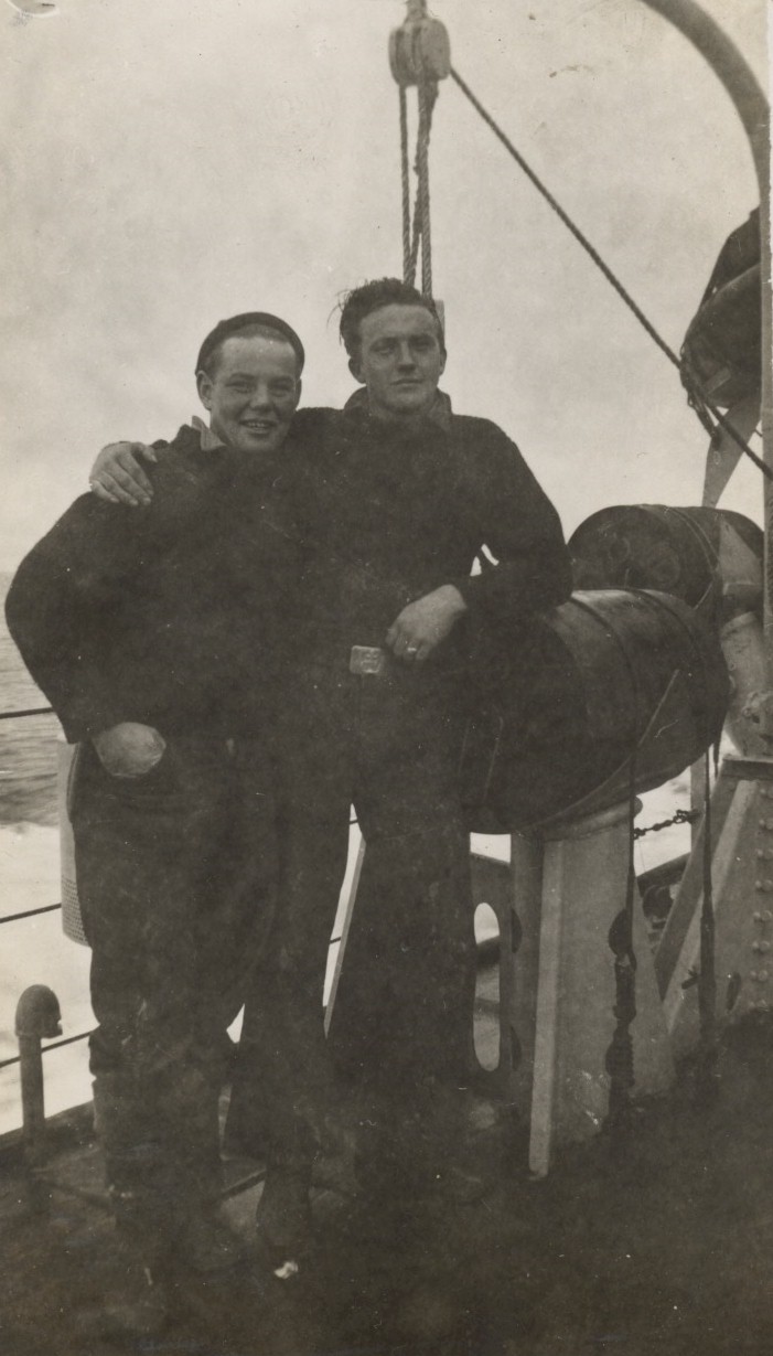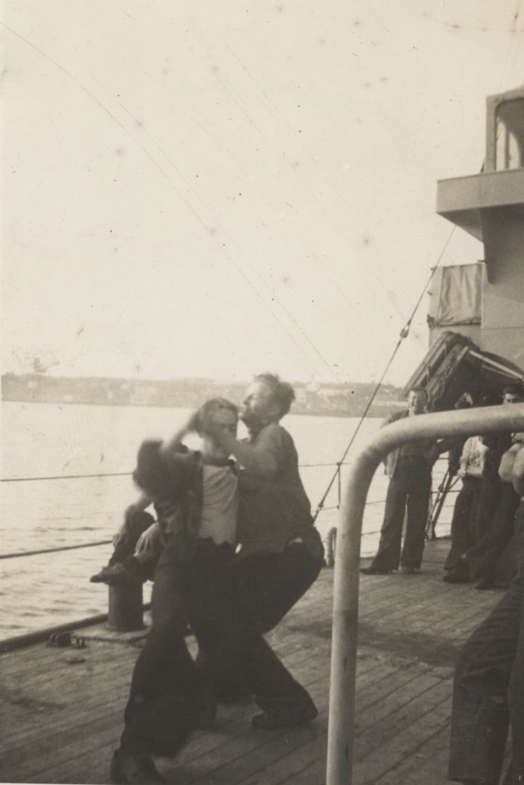 (JW07) HMCS NIPIGON J154 outboard minesweeper  (JW08) HMCS TROIS-RIVIÈRES "in slips - taken from mast - 1945"  (JW09) Unidentified sailor "sitting in the vent - HMCS TROIS-RIVIÈRES - 1945"