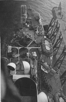 Unknown sailors on the fo'c's'le of HMCS TROIS-RIVIÈRES J269, Bermuda circa may/Jun 1945
