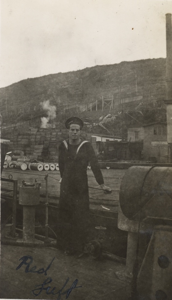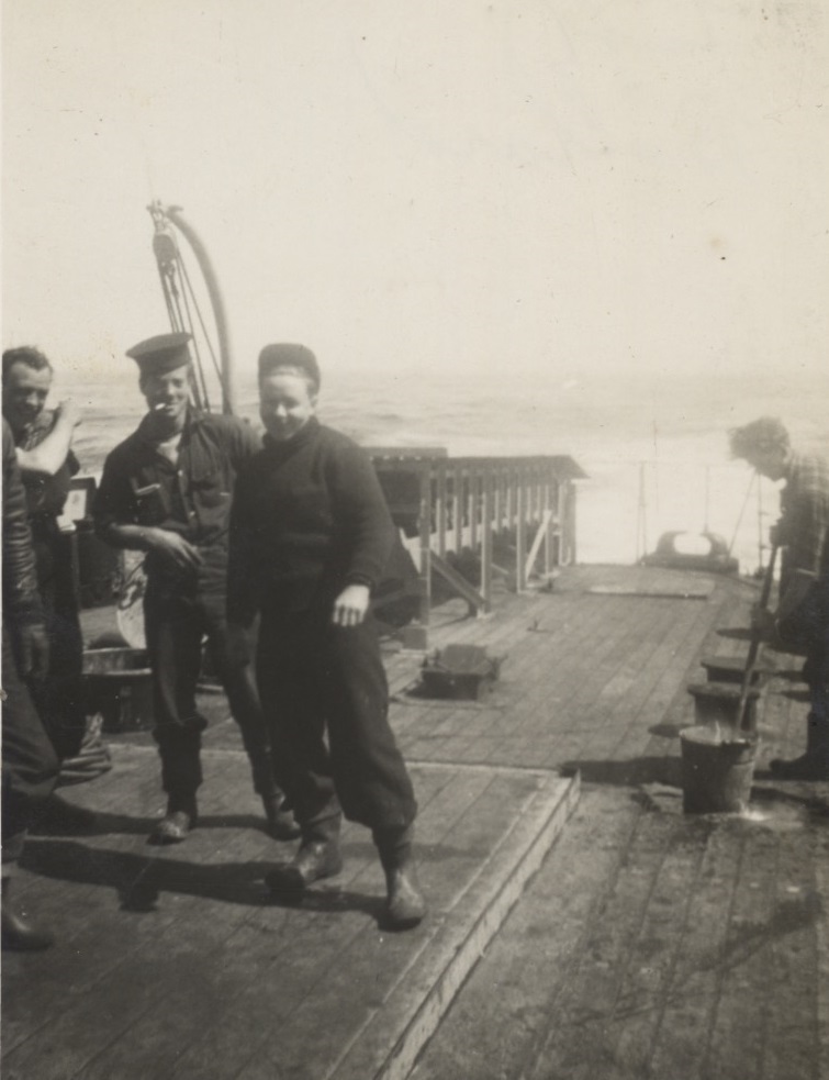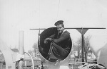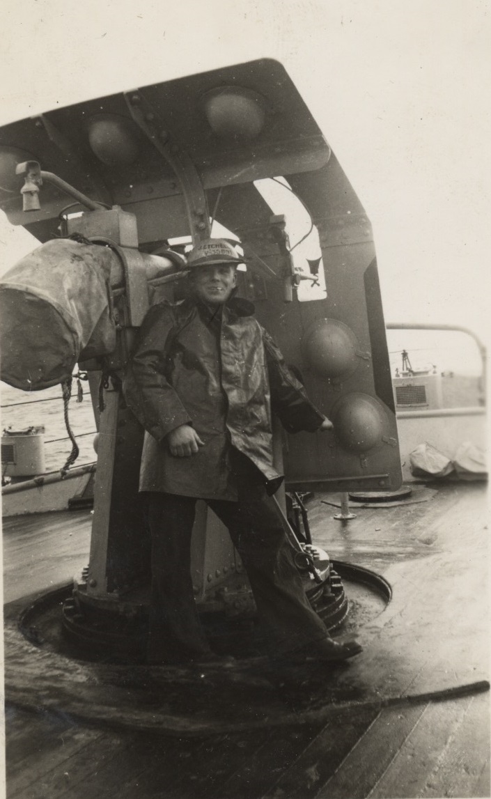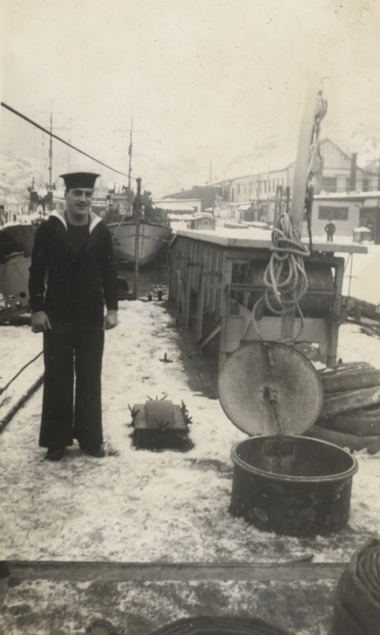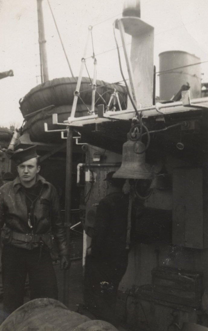 Unknown sailor (as Quartermaster) on the Quarterdeck of HMCS TROIS-RIVIÈRES, refit in Lunenburg Feb-May 1945