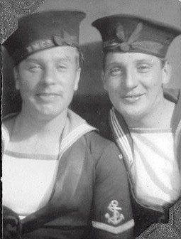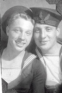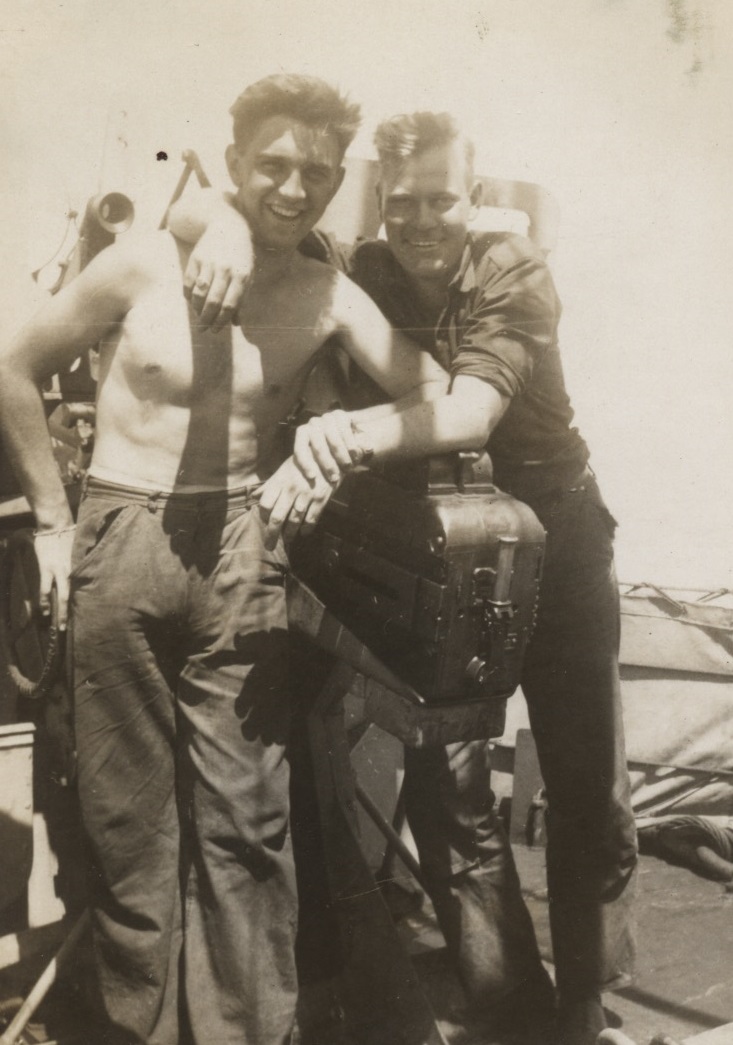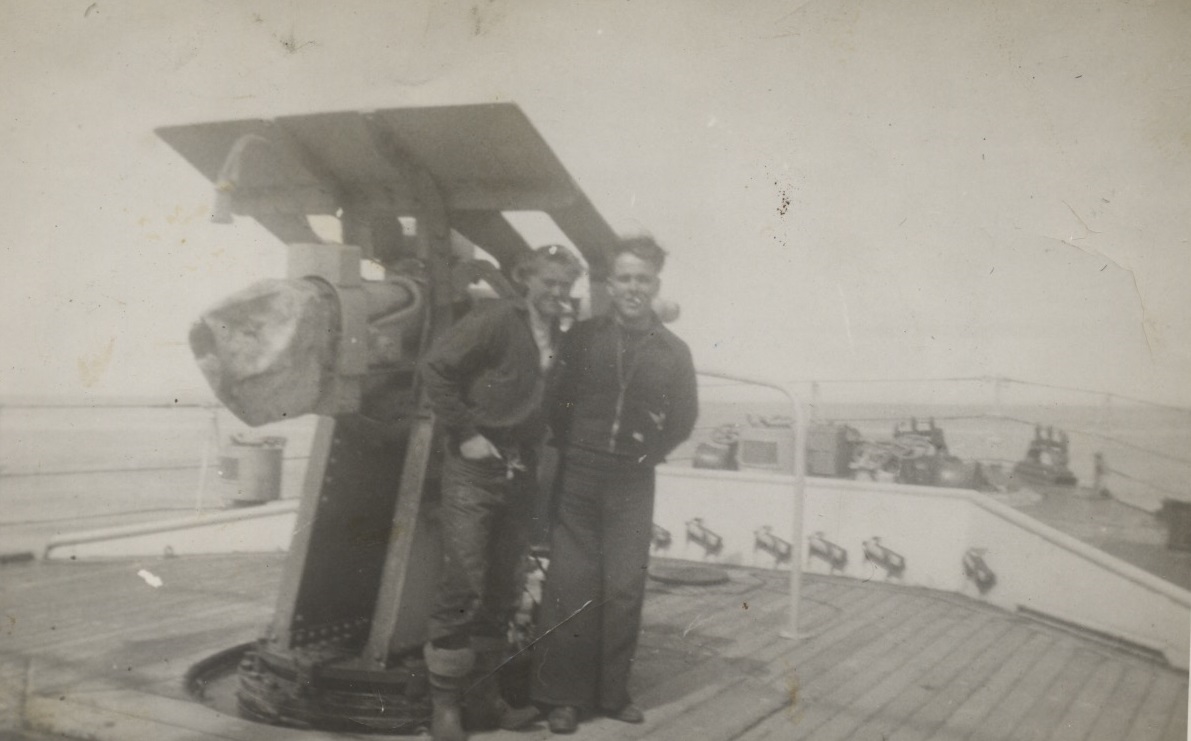 William Connor (left) and shipmate by forward gun on HMCS TROIS-RIVIÈRES J269