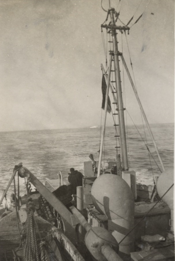 Unknown sailor on the boat deck of HMCS TROIS-RIVIÈRES J269
