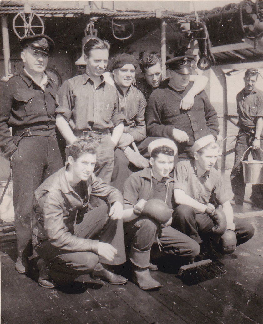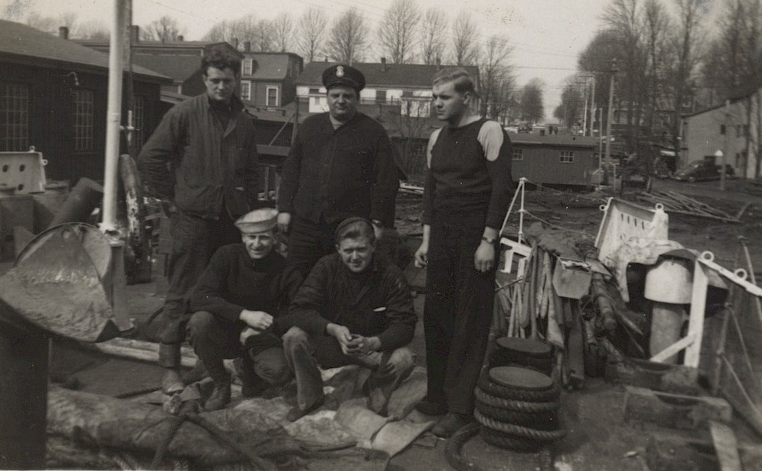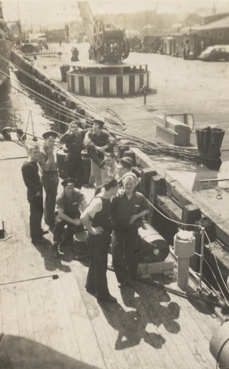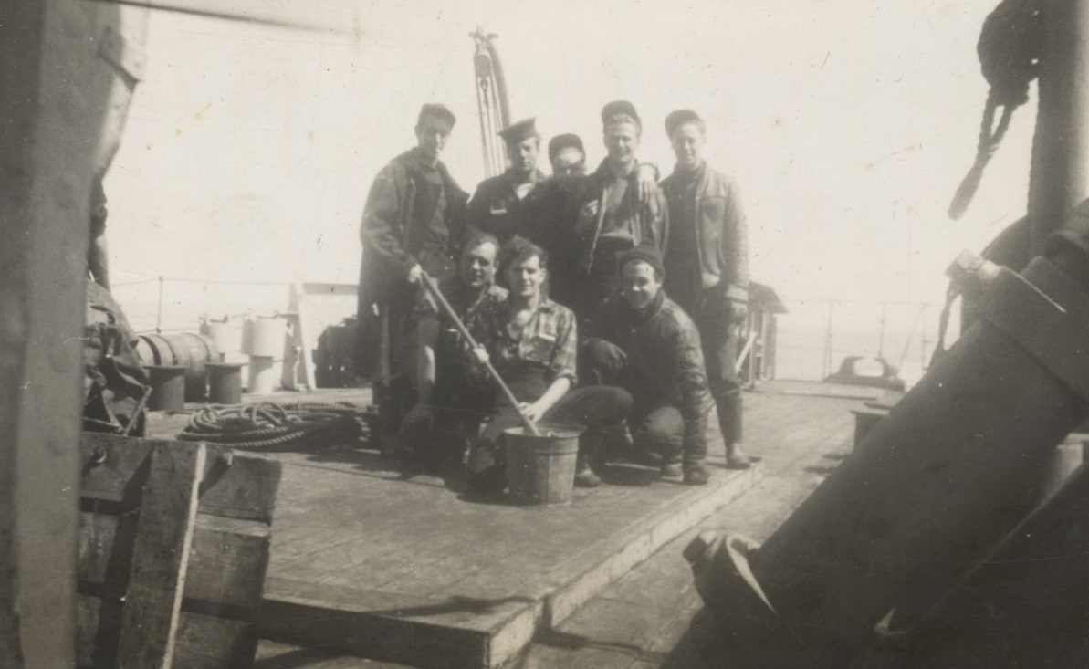 Sailors on the Quarterdeck of HMCS TROIS-RIVIÈRES J269, Feb 1945, refit in Lunenburg