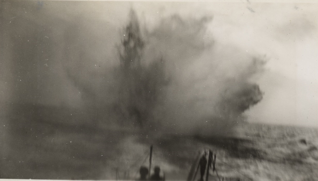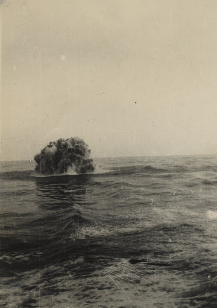 HMCS TROIS-RIVIÈRES J269 dropping depth charges
