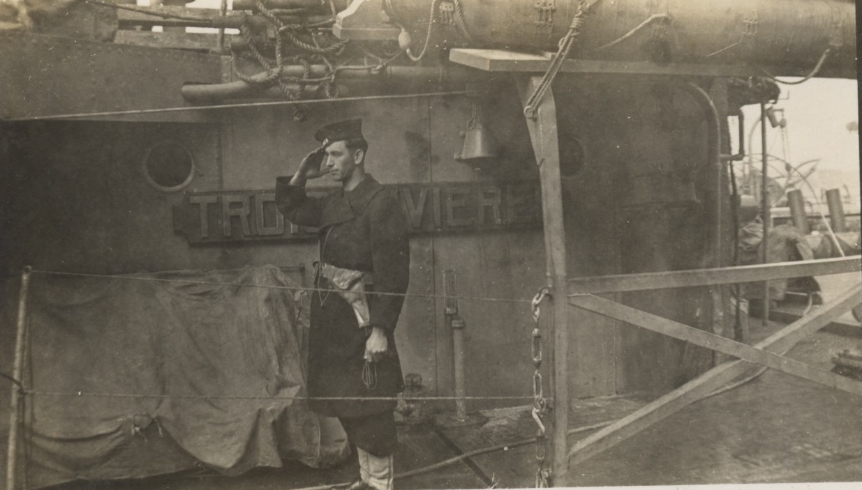 Unknown sailor on the Quarterdeck of HMCS TROIS-RIVIÈRES  (possibly tot time)