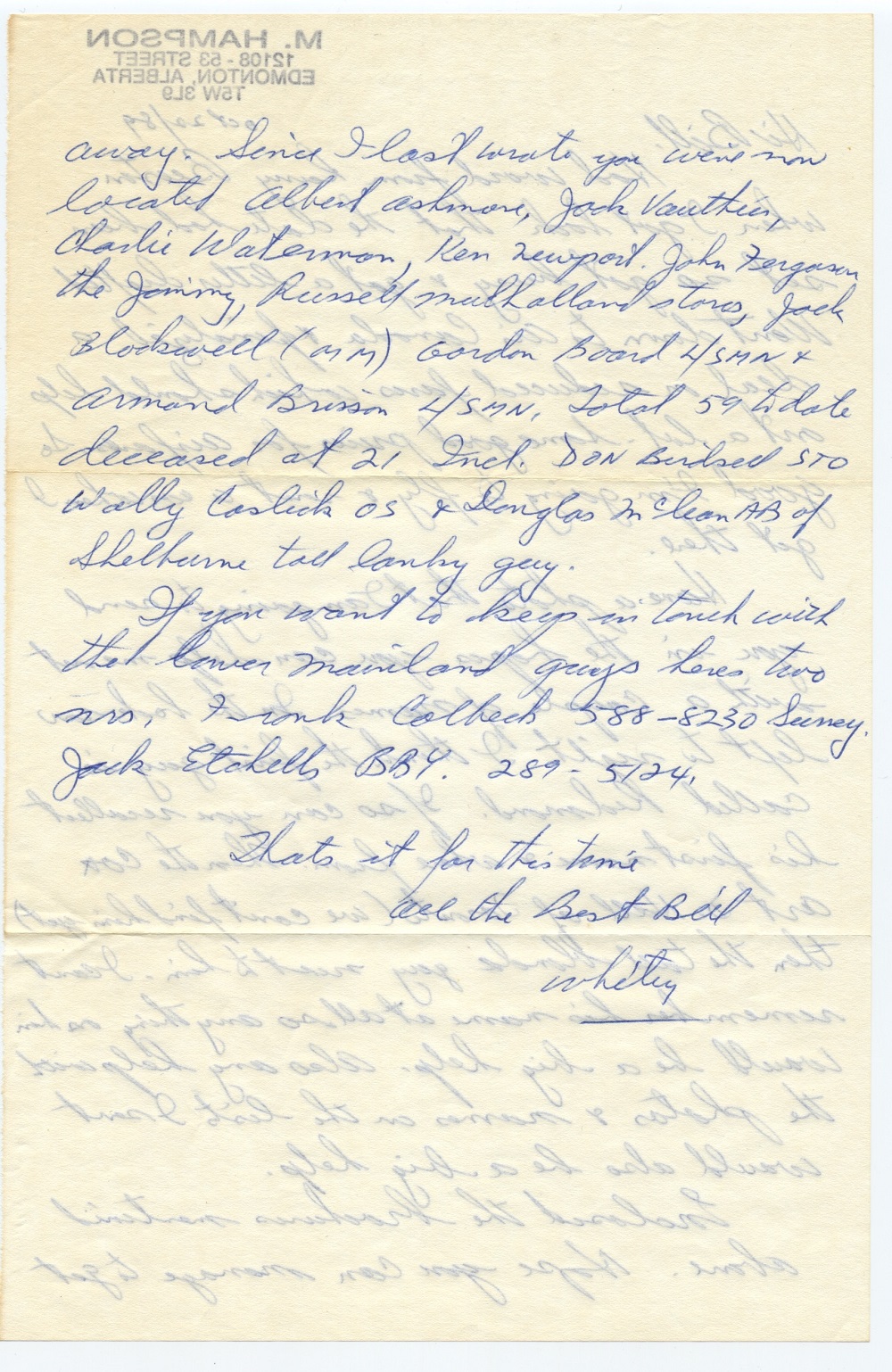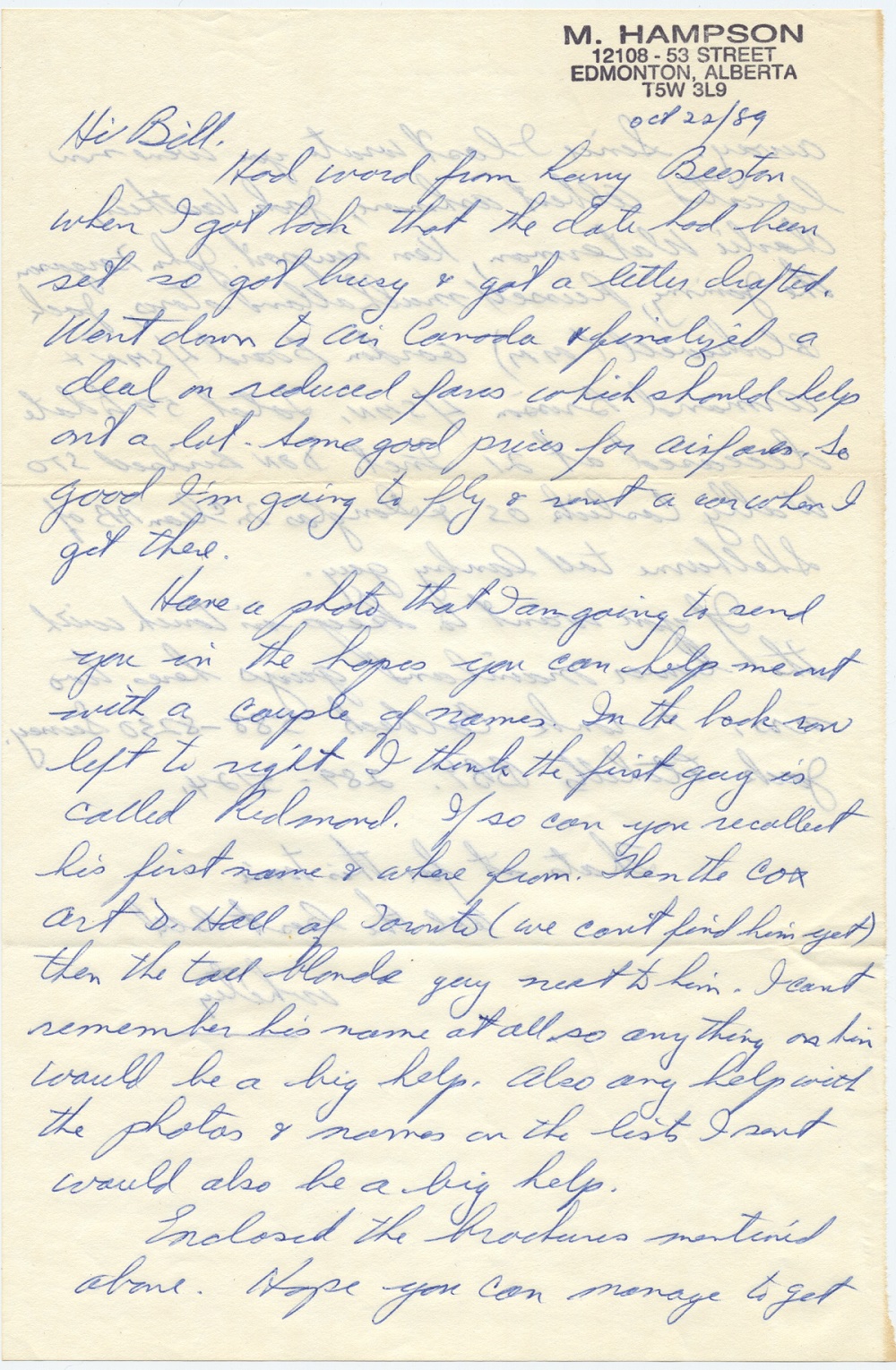 Letter from Maurice Hampson to William Connor as they work on organizing a reunion