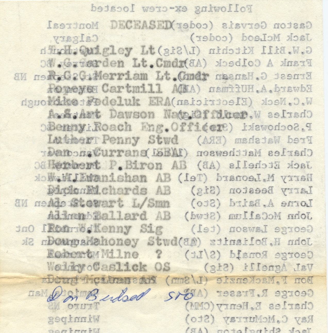 List of deceased crew members put together in the lead up to the 1990 reunion