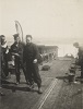 Unknown sailors by the port depth charge thrower on HMCS TROIS-RIVIÈRES J269
