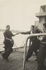 (Webmaster's note: The "victim " has to work on his acting as he is smiling.  The Quartermaster in this photos appears to be the same person as in the photo directly above.)