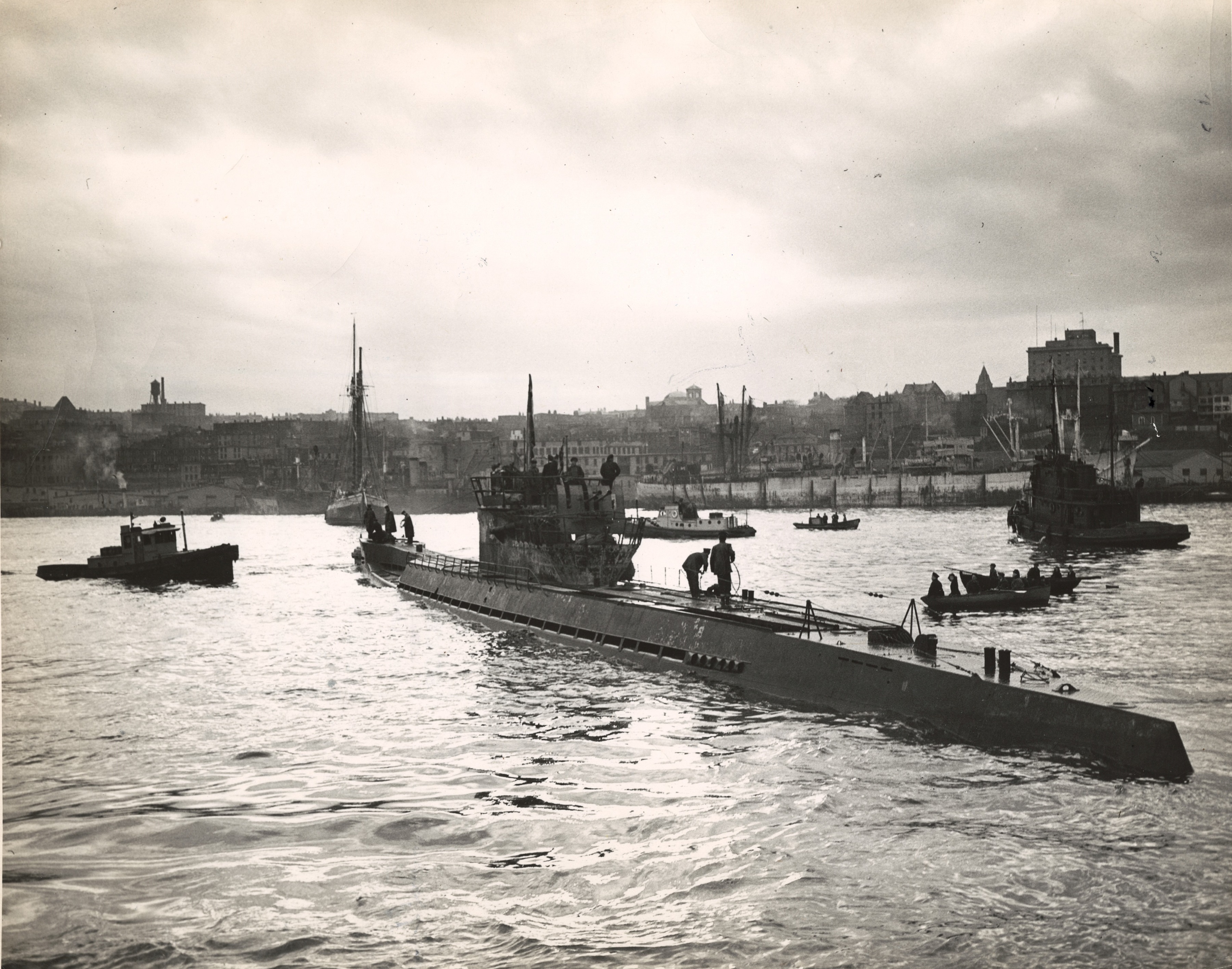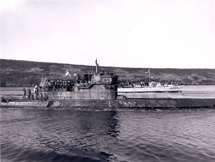 HMCS U-190 (former German U-boat U-190) arrives in Halifax Photos taken from HMCS ST BONIFACE J332