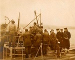 (FM453) Gaumont, François Messier, Ross and Taylor (with camera) on HMCS U-889 (FM454) Crew of HMCS FORT FRANCES on HMCS U-889 (FM455) Gaumont (left) and François Messier on the casing of HMCS U-889 (FM456) Gaumont (left) and Taylor on the casing of HMCS U-889 (FM457) Crew of HMCS STANDARD COASTER looking down at HMCS U-889 - François Messier looking up at the camera