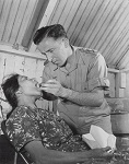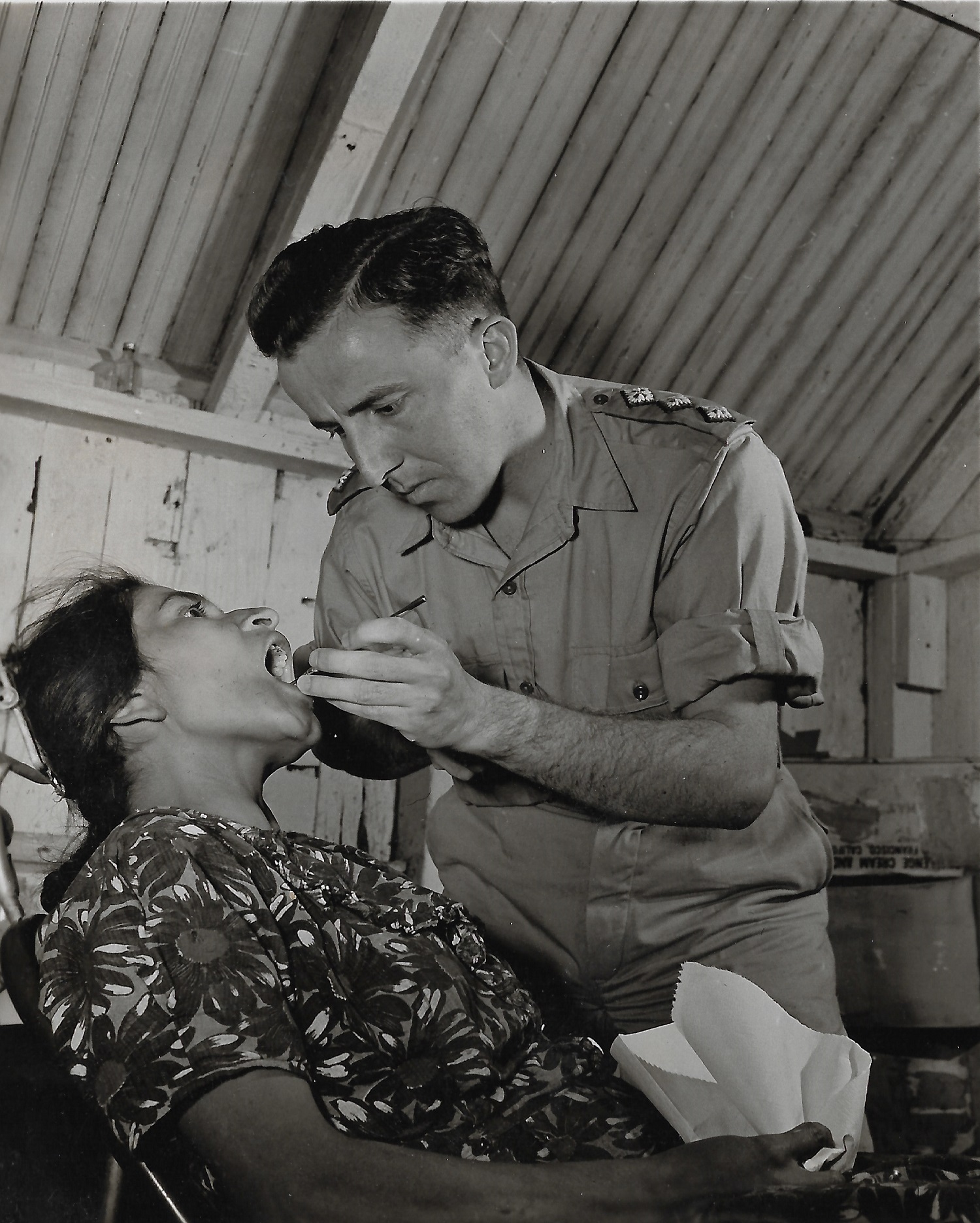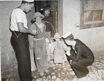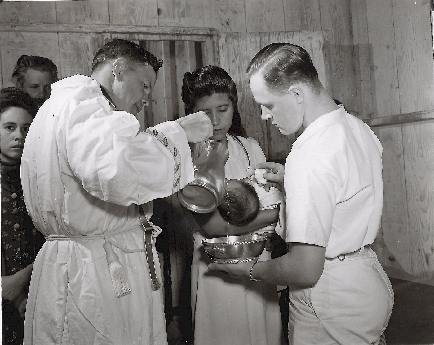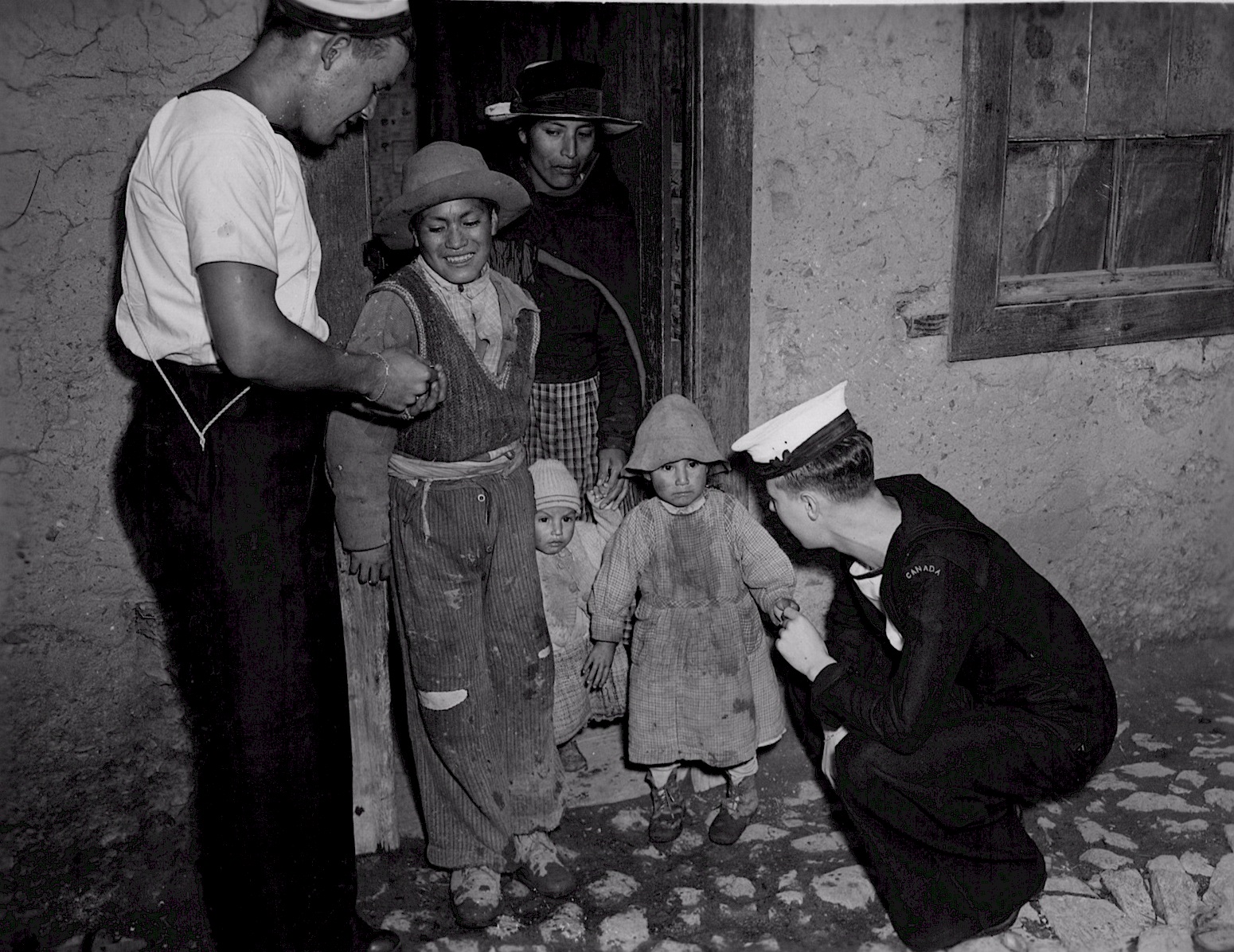 (JM105-JM106) Village Bahia, Magdalena Bay, Mexico (JM107) Cook John McGowan ashore at Magdalena Bay, Mexico (JM108) Ship's dentist from HMCS UGANDA, Capt E.B. Hooks, examining the local villagers at Bahia, Magdalena Bay, Mexico, 1946 (JM109) HMCS UGANDA'S padre, Chaplain (R.C.) J.H. Laporte performing Baptisms/Christenings at Bahia, Magdalena Bay, Mexico, 1946