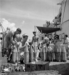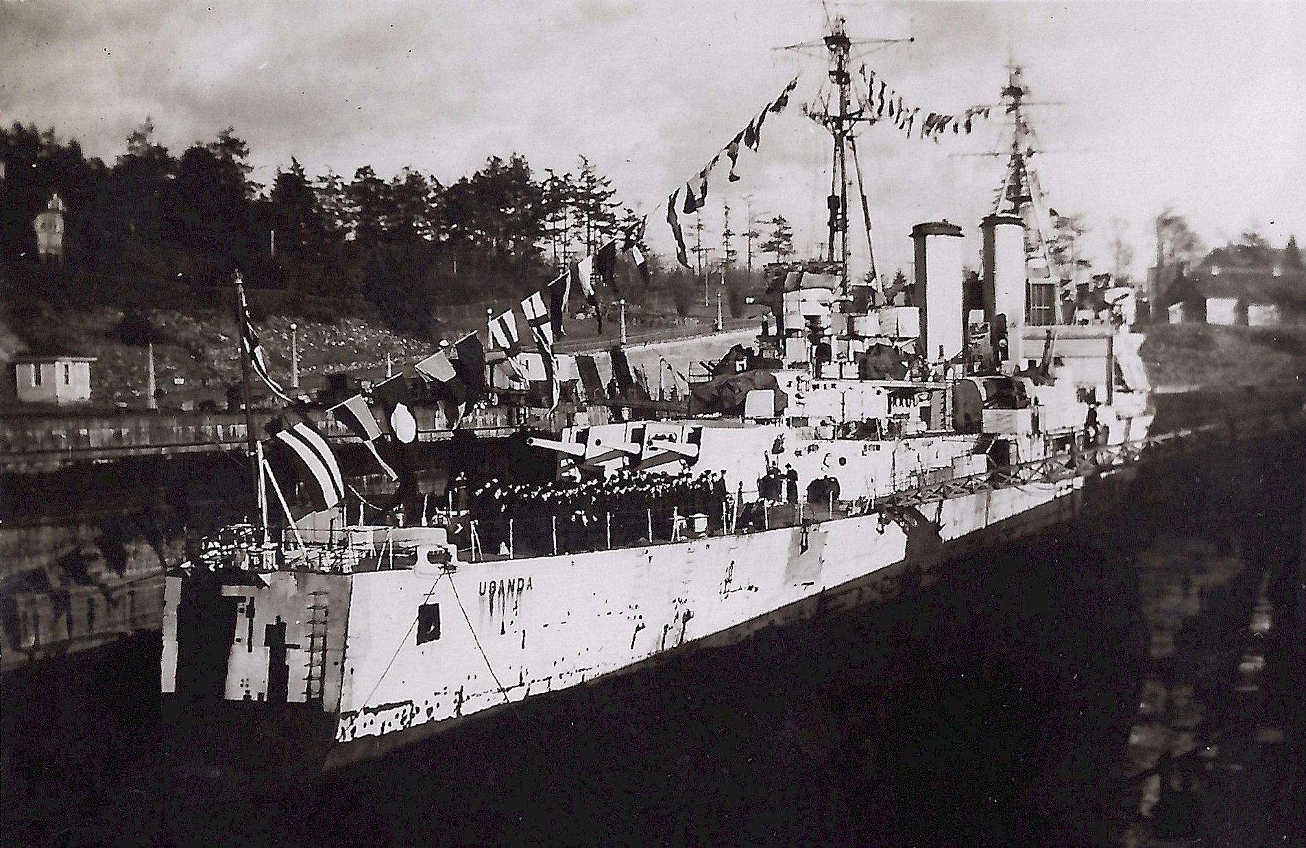 (UGA020) HMCS UGANDA - Esquimalt, 1945. From the collection of Kenneth Marlatt. Courtesy of Judy Agis (UGA021) HMCS UGANDA arrives in Esquimalt after service in the Pacific. From the collection of J. Vincent Wesley, CPO, RCNVR. Courtesy of Marilynn Taylor (UGA022) WRENs on HMCS UGANDA, 30 Aug 1945. Courtesy of the CFB Esquimalt Naval and Military Museum (UGA023) Crew of UGANDA muster for pay parade on return to Esquimalt (UGA024) UGANDA sailors on their arrival in Esquimalt