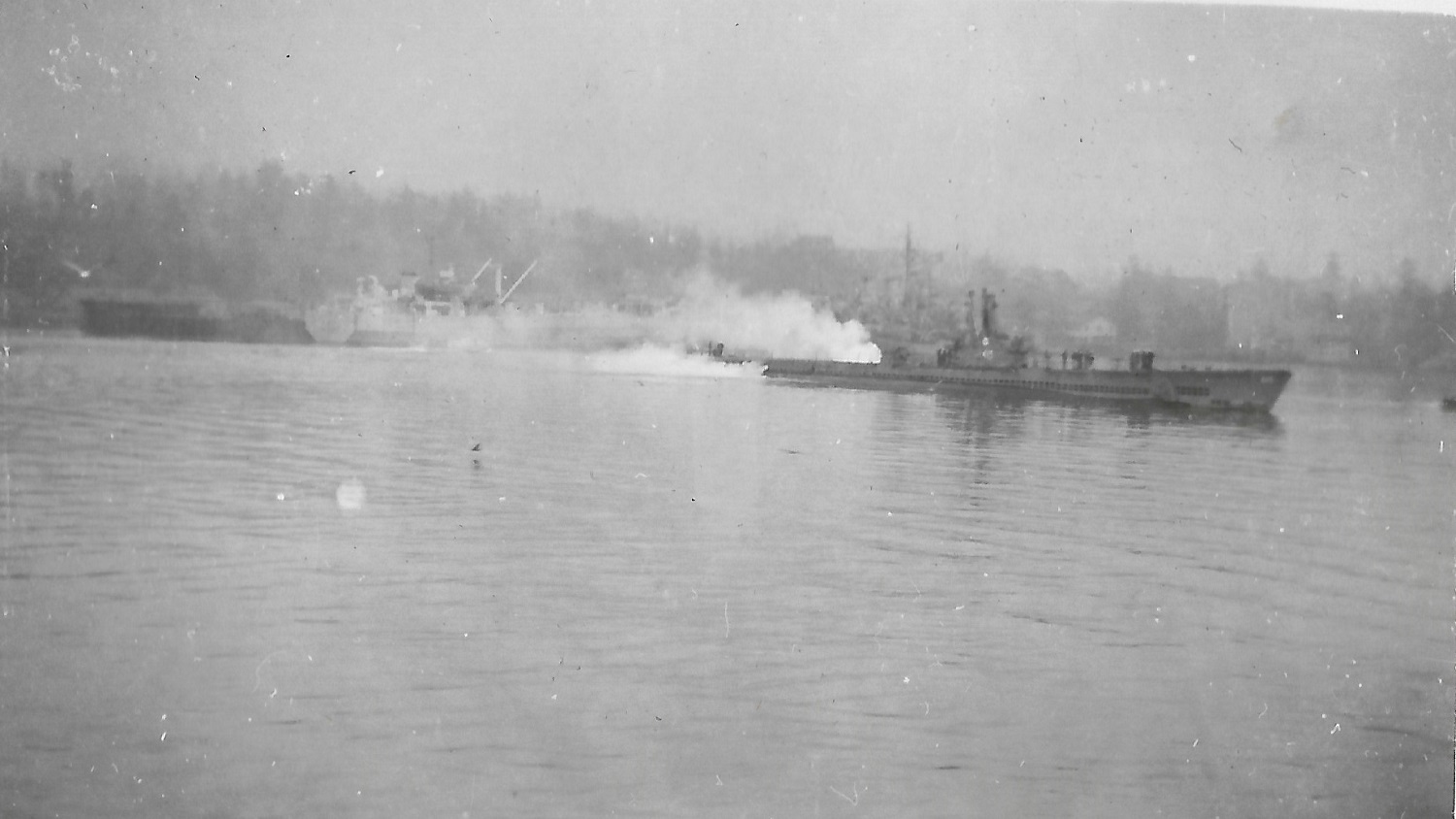 (JM82-JM83) Unknown merchant ships in Esquimalt Harbour (JM84) USN sub in Esquimalt harbour (JM85-JM86) USN sub alongside HMCS UGANDA in Esquimalt harbour