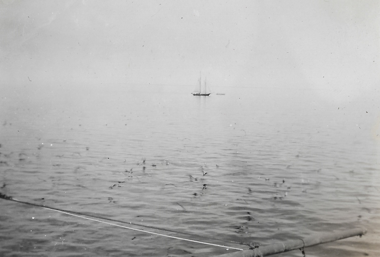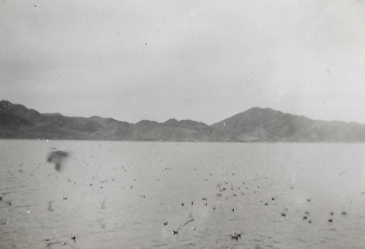 (JM95) Sail/fishing craft passing near HMCS UGANDA (JM96) Seabirds in the water off Magdalena Bay, Mexico by HMCS UGANDA (JM97) Sailing vessel in Magdalena Bay passing near HMCS UGANDA (JM98-JM99) HMCS UGANDA at anchor in Magdalena Bay, Mexico