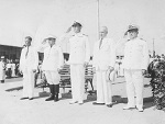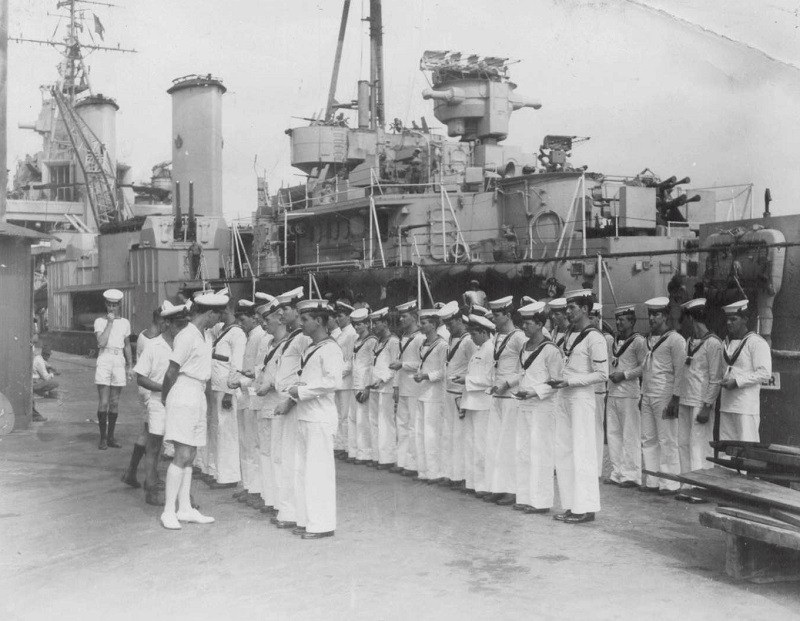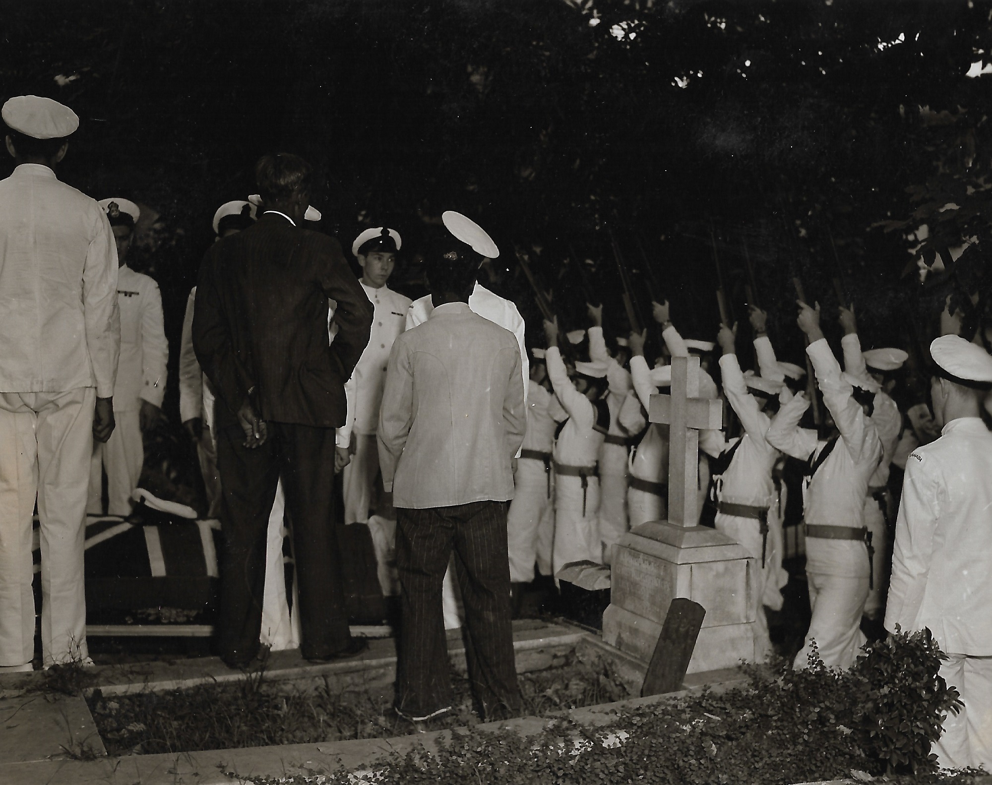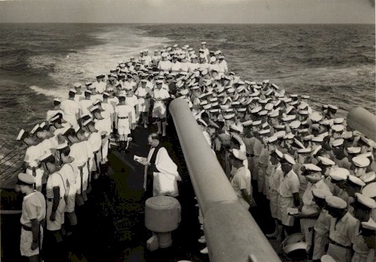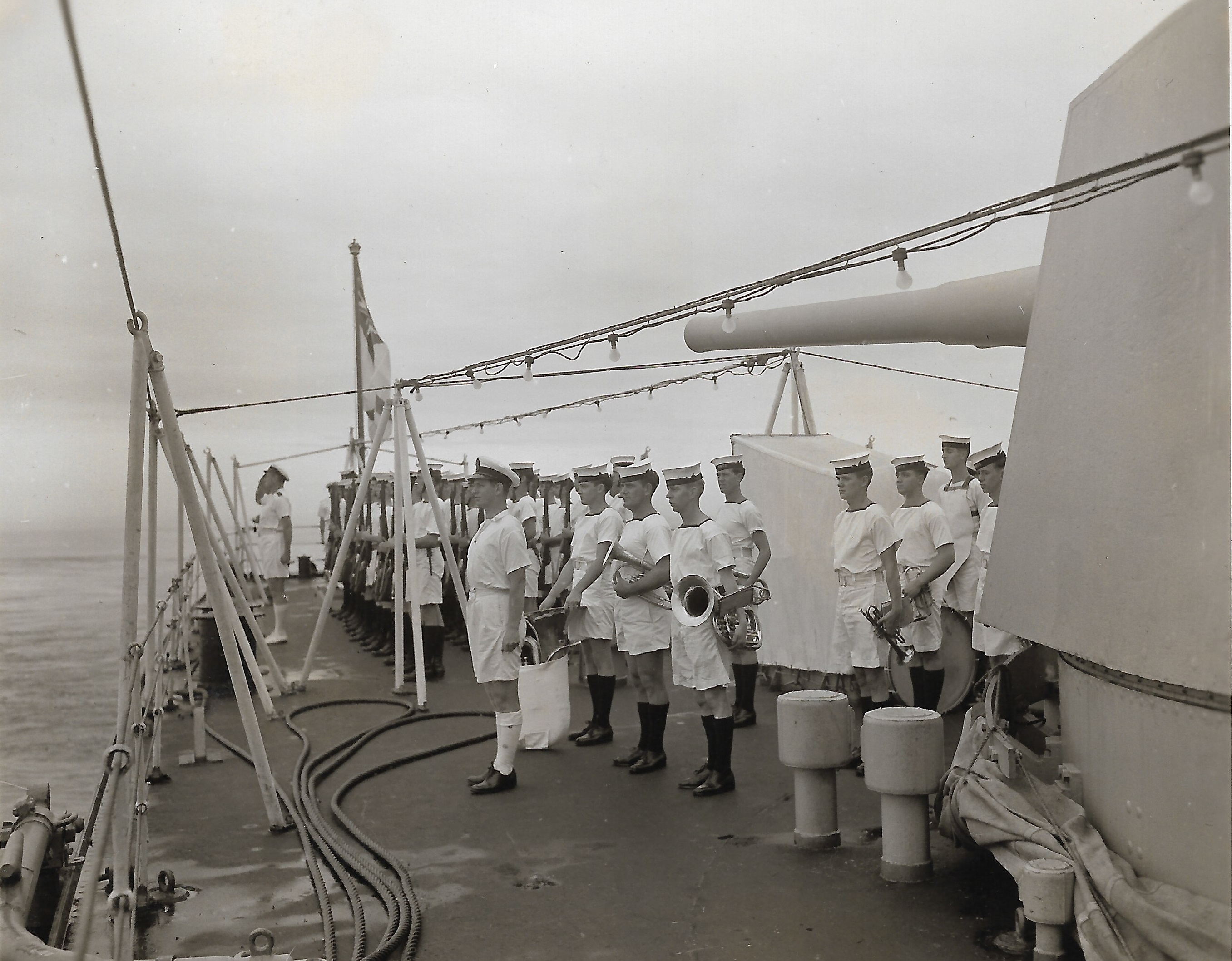 (EL02-EL09) photos taken during UGANDA'S South American cruise in 1946 (EL07) Believed to be the funeral for L/Stwd George Stuart who died on ship of an accidental electrocution during UGANDA'S port visit to Rio From the collection of Eric Long, AB, RCN