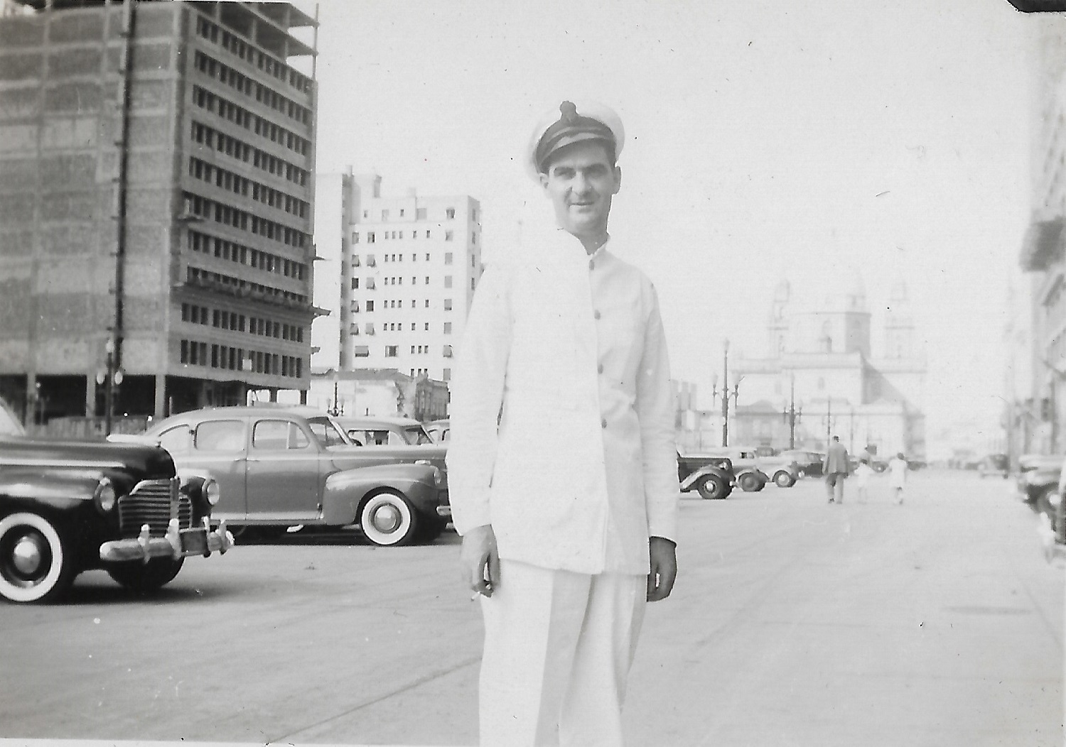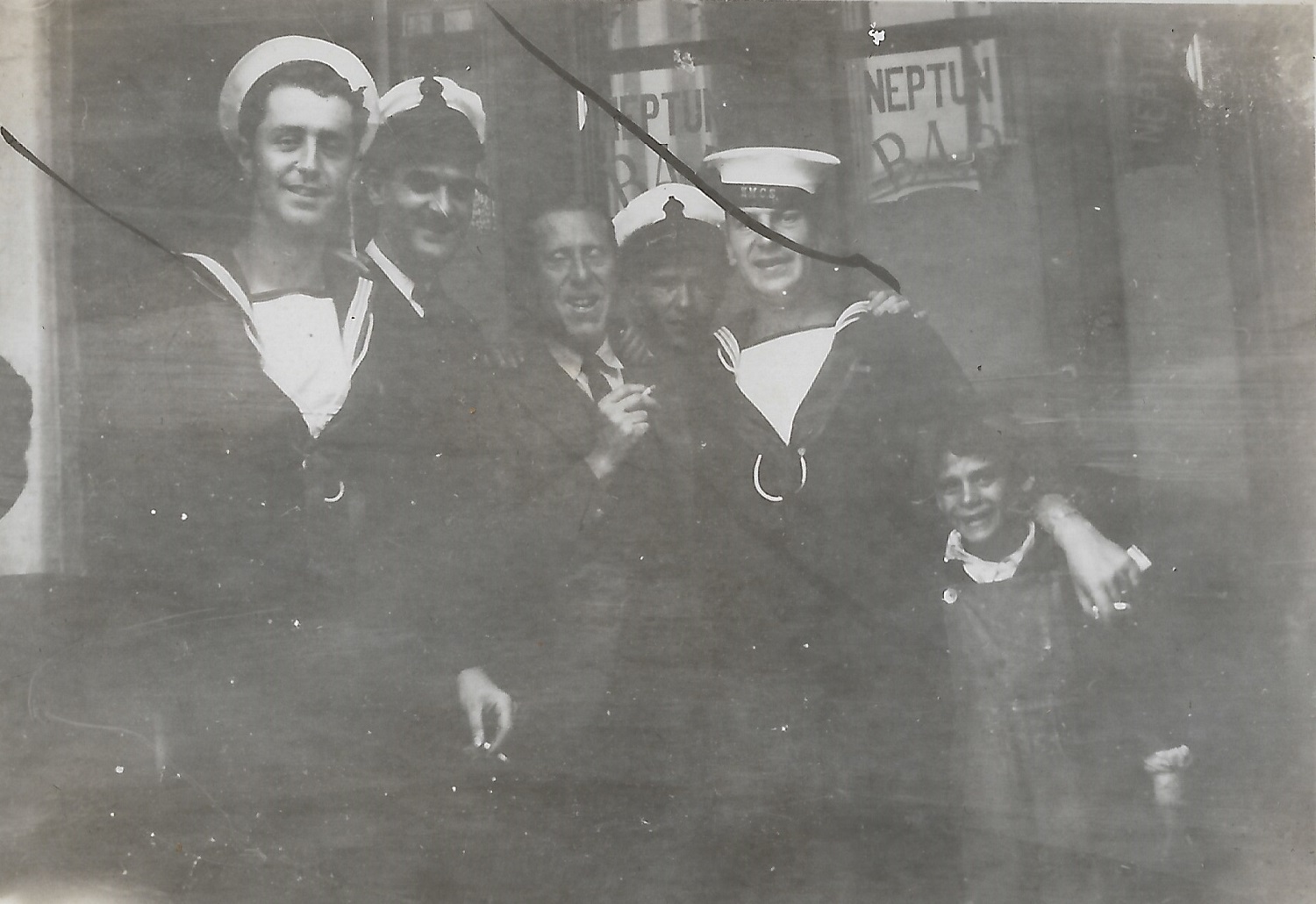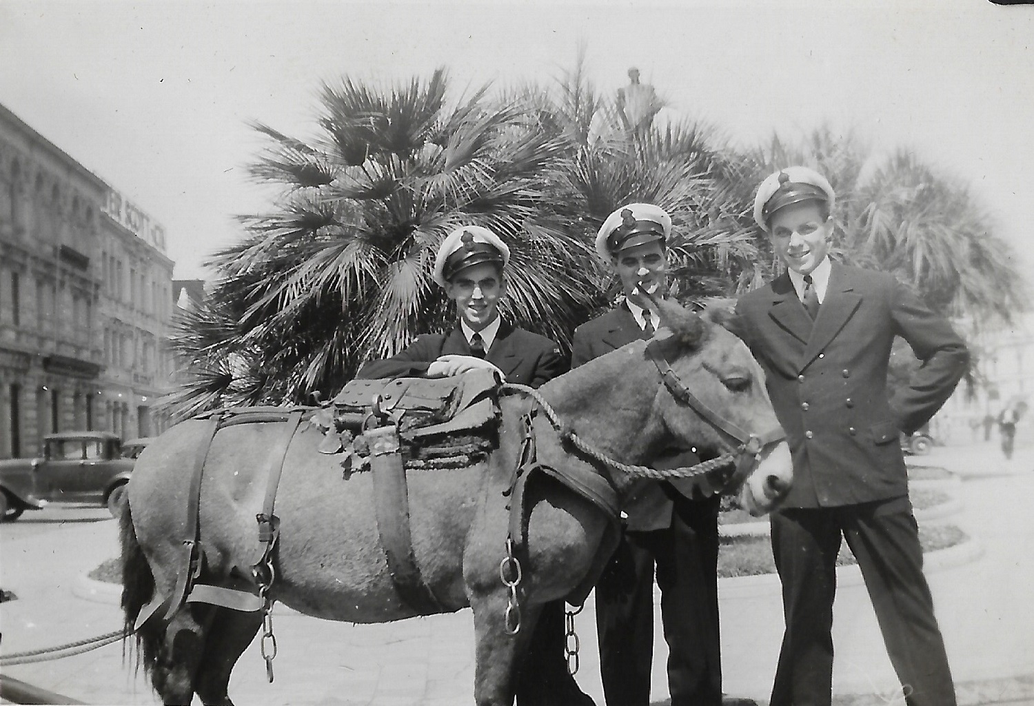 (LR44) The crew of the UGANDA collection artifacts from the wreck of the Admiral Graf Spee, Montevideo, Uruguay, 1946 (LR45) A few of UGANDA'S crew talking to a local in Montevideo - 1946 (LR46) Montevideo - 1946 (LR47) A few of HMCS UGANDA'S crew, Montevideo, Uruguay, 1946 - PO Larry Restall on the left (LR48) HMCS UGANDA at sea en route to Rio de Janeiro - 1946